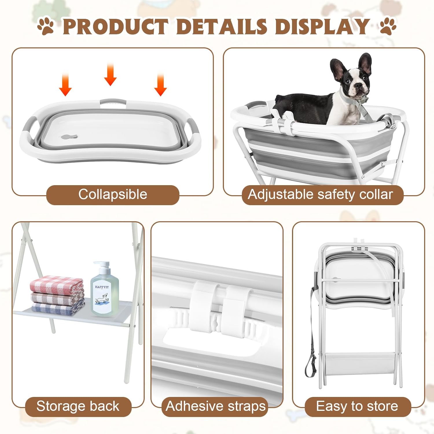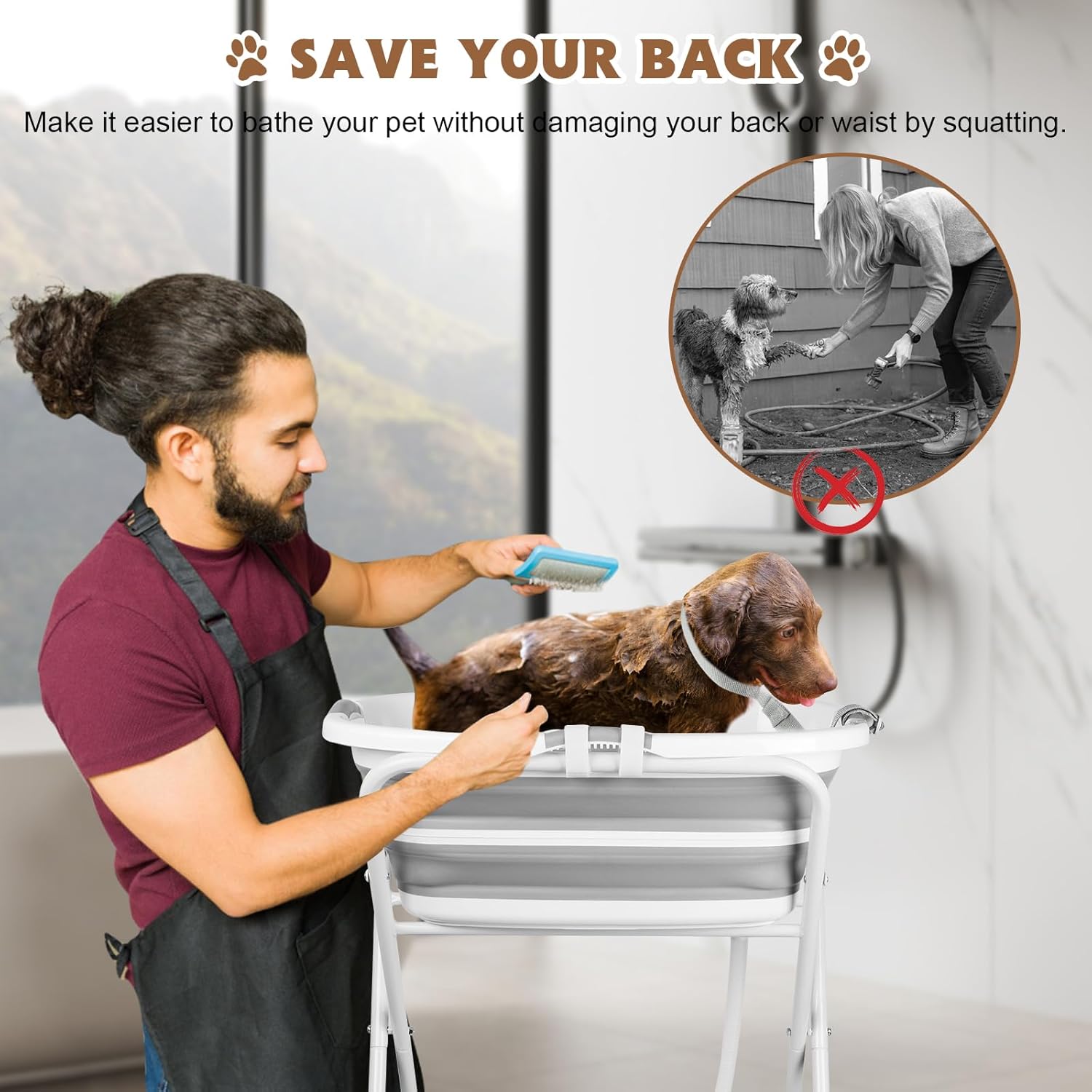 YUEPET Elevated Collapsible Dog Bathtub, Portable Shower Tub with Safety Collar, Foldable Dog Washing Station for Bathing and Grooming for Puppies Medium Dogs Cats Pets