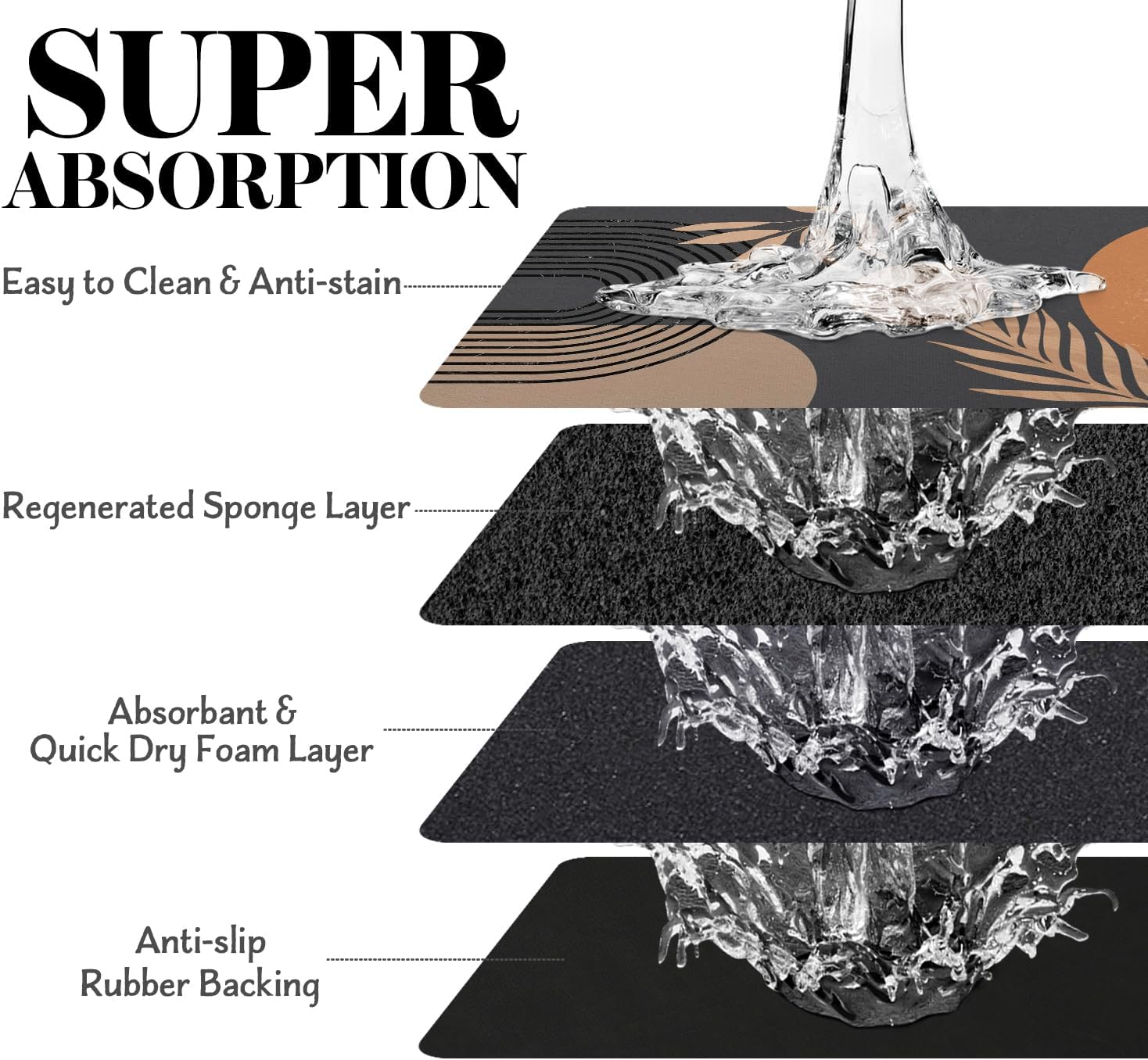 - Super Absorption: The diatomaceous earth dog mat for water bowl can absorb spilled water without leaving traces and dry quick, avoid wetting pet paws even for messy drinkers. And it does not attract pet hair like traditional silicone dog bowl mat.