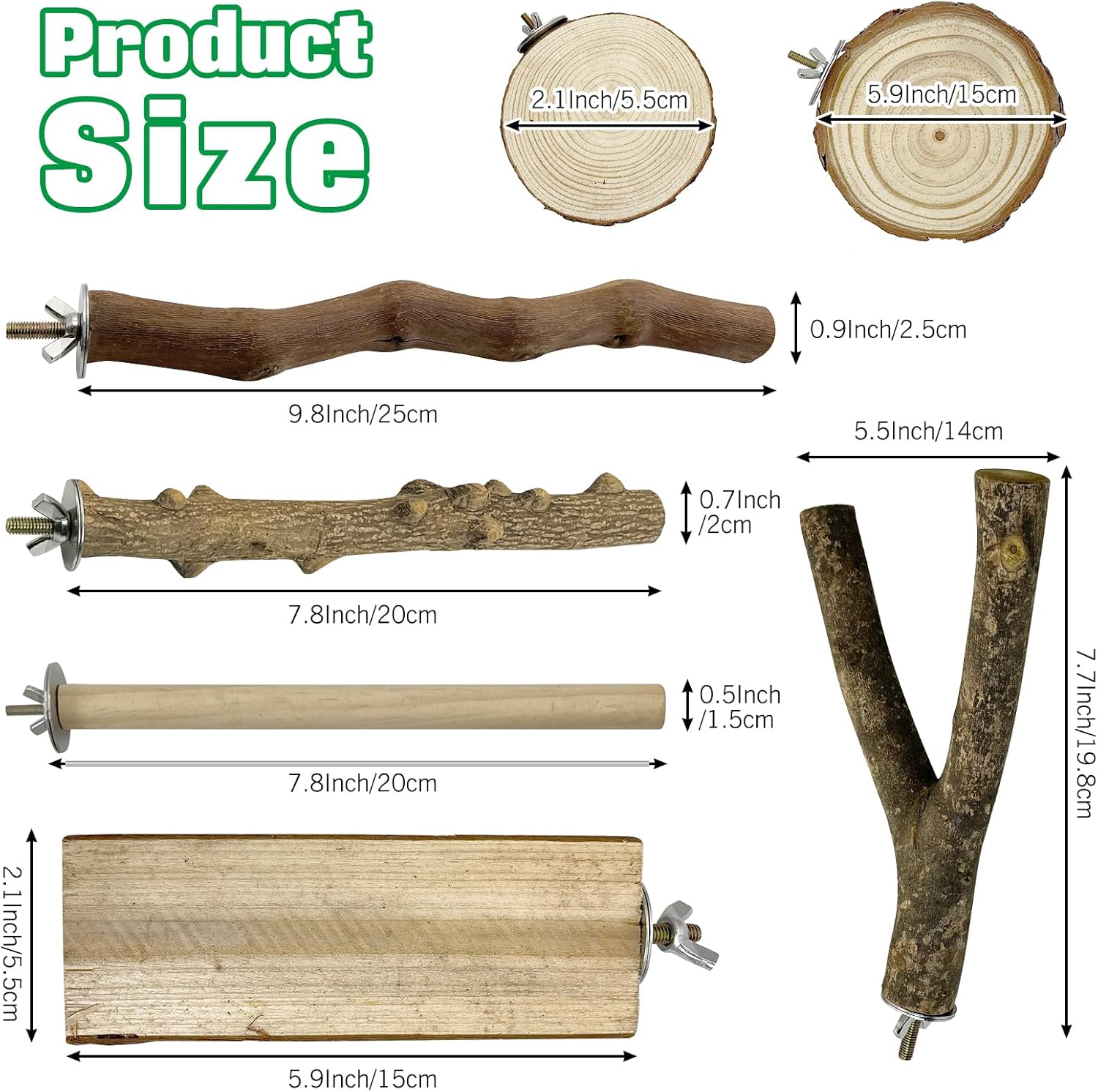 • EASY TO INSTALL: Installing these parakeet perches is a breeze. The wooden bird perch toy attaches securely to the cage with built-in bolts and wing nuts, eliminating the need for additional mounting equipment. It can be mounted inside or outside the cage for extra living and landing space with the included screws. These bird perch stand are designed to mimic the natural trees that birds like to stand on. Please check the size of the parakeet perch platforms to see if it will fit your bird cage or pet before purchasing