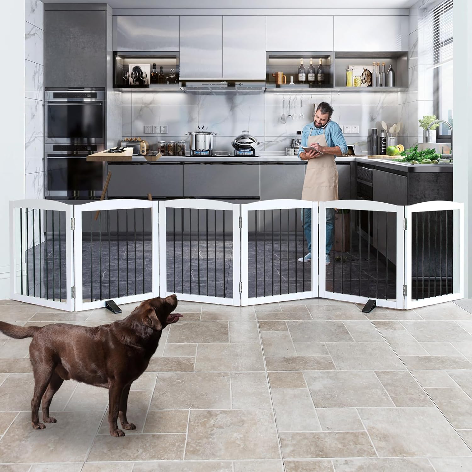 - 【6 Panels】Dog gate is built with 6 separate panels, secured together with sturdy stainless steel hinges.