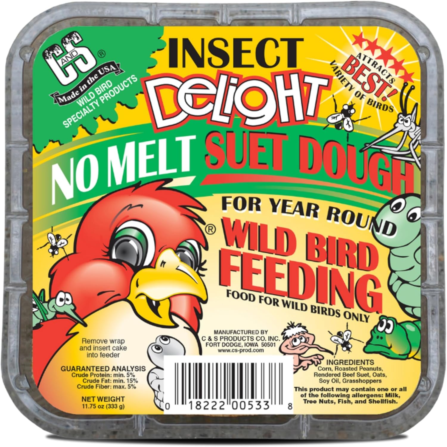 - ECONOMICAL AND EASY TO USE compared to traditional seeds; C&S Insect Delight No Melt Suet Dough combined with a wire feeder offers a great value for todayโs wild bird feeding customer