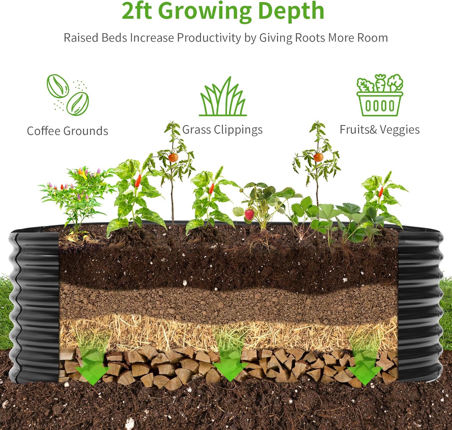 • Large space: 96'(L) x 48 "(W) x 24" (H) metal raised garden bed will provide enough space to grow various vegetables, fruits, flowers.