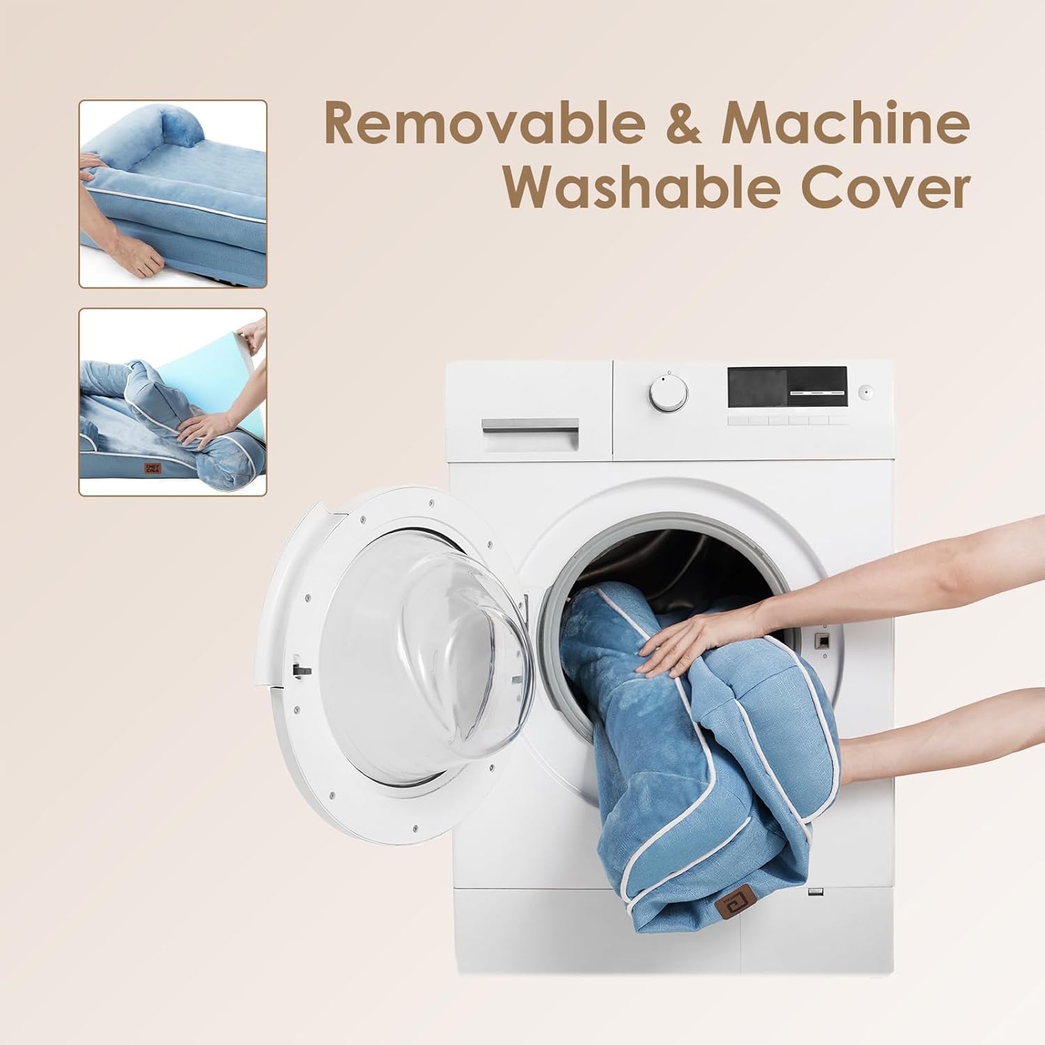 • MACHINE WASH and CARE INSTRUCTION: Our washable dog bed with removable cover has zipper closure and can be easily cleaned. Just get the foam off and it can be machine washed directly with the sides. Please note that the inner foam is not washable. After receiving it, leave it for 24-48h for rebound.