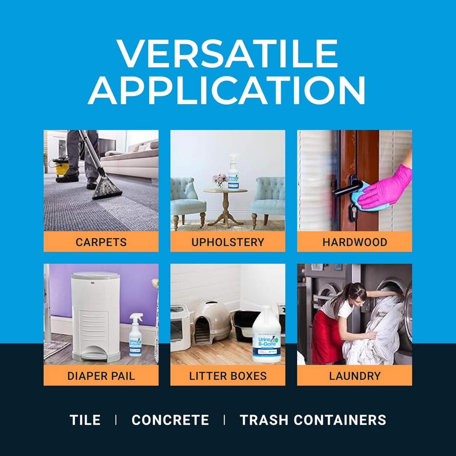 • Versatile Cleaning Solution: Beyond pet stains, Urine B-Gone is ideal for a variety of applications; Use it in your laundry to pre-spray soiled areas or even in drains, urinals, and toilets; This all-in-one cleaner & odor remover makes tackling tough stains and odors simple and efficient