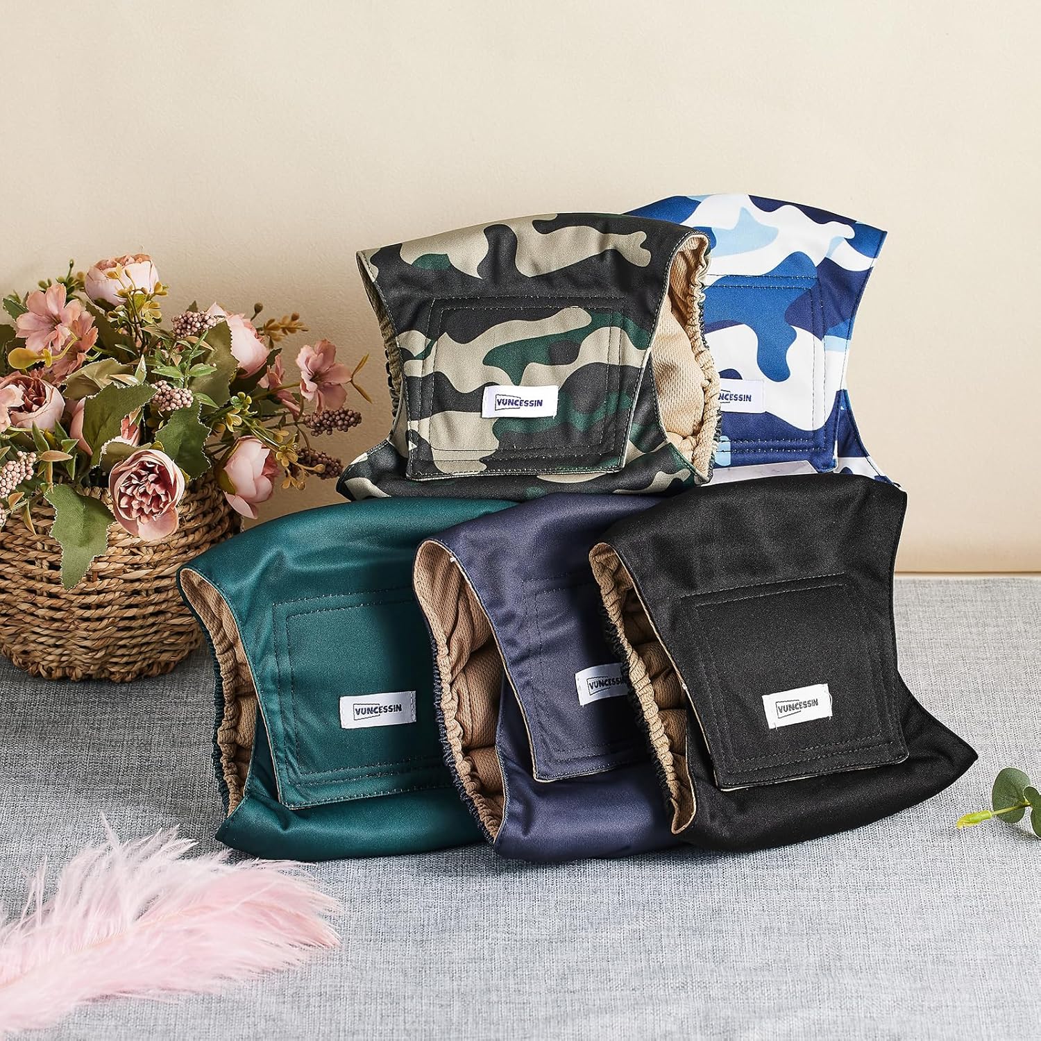 - Washable Multi Pack Fashion: 5 XL size washable male dog belly bands, come with 5 stylish patterns, no need to worry about frequent dog diaper changes for your puppy. Small-size washable male dog nappies are a worthy alternative to disposable doggy diapers as they reduce disposable nappy waste and pay for themselves quickly.