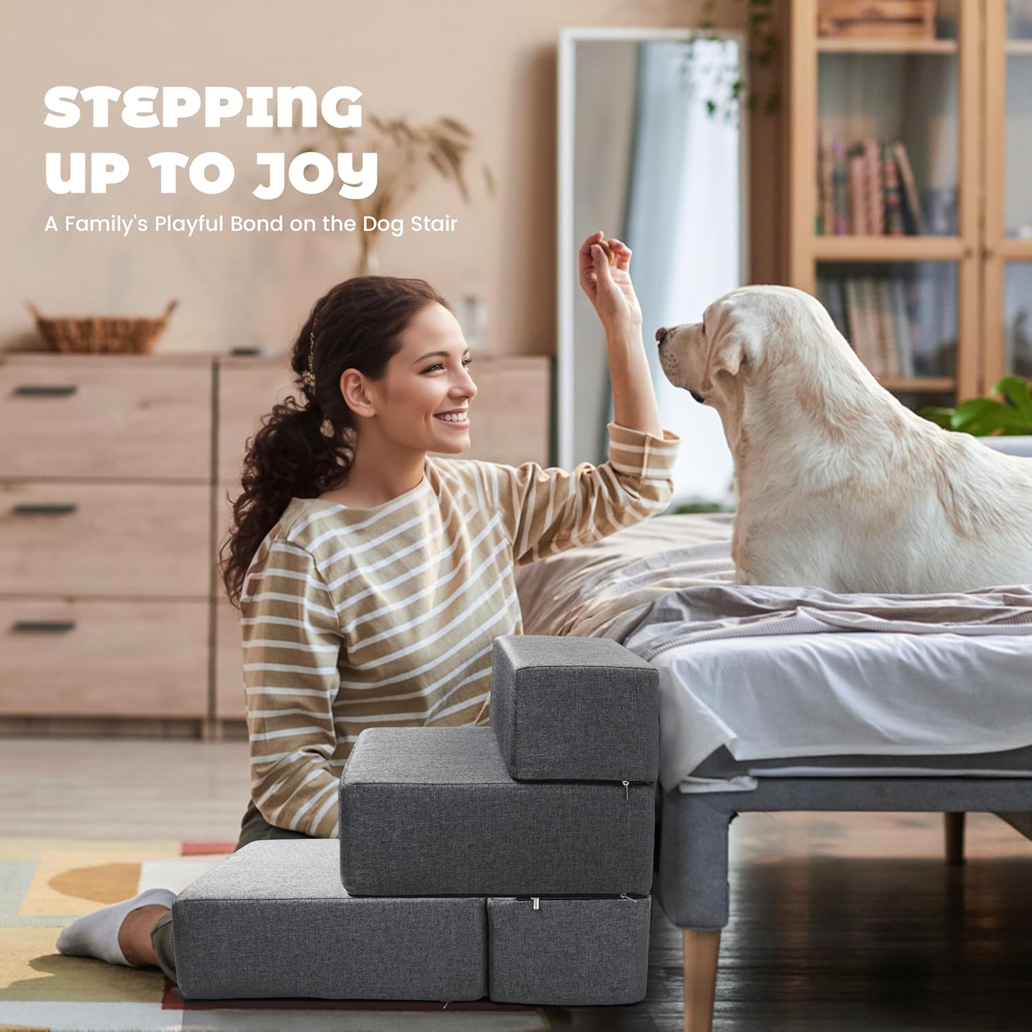 - HIGH DENSITY FOAM: Pet stairs are filled with high-density foam, offering firm yet comfortable support that's just rightโnot too soft, not too hard; The outer layer is crafted from cotton-linen fabric, which provides a non-slip surface while ensuring a pleasant touch for your pet