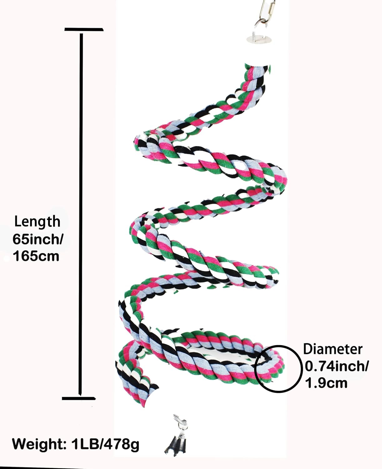 • 🐦[MATERIAL &SIZE] Natural food coloring and non-toxic cotton suitable soft footing and no smell,Heavey duty made ,Length 65 inch/165cm(Fully extended), Diameter:1.9cm/0.74inch ,Weight 1lb/478g