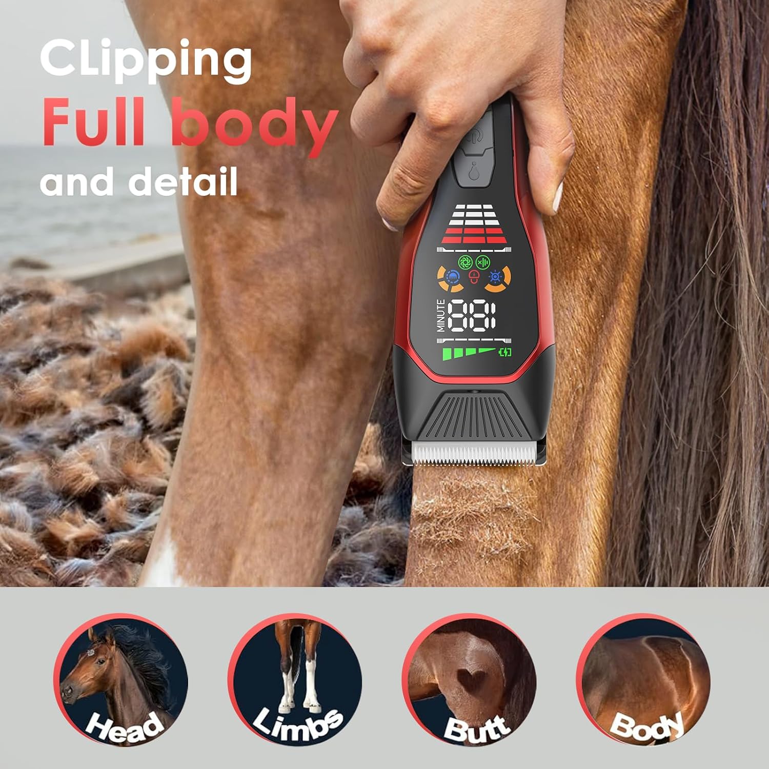 • 2 CLIPPING MODES FOR HEAVY COATS&LED LIGHTHING-2-speed setting is easy to use(6000-6500RPM),allowing you to adjust the speed based on the thickness and sensitivity of your horse's hair,enough power to handle thick fur without snagging or pulling,press LED light button switch can change the brightness of the light or turn it off as needed