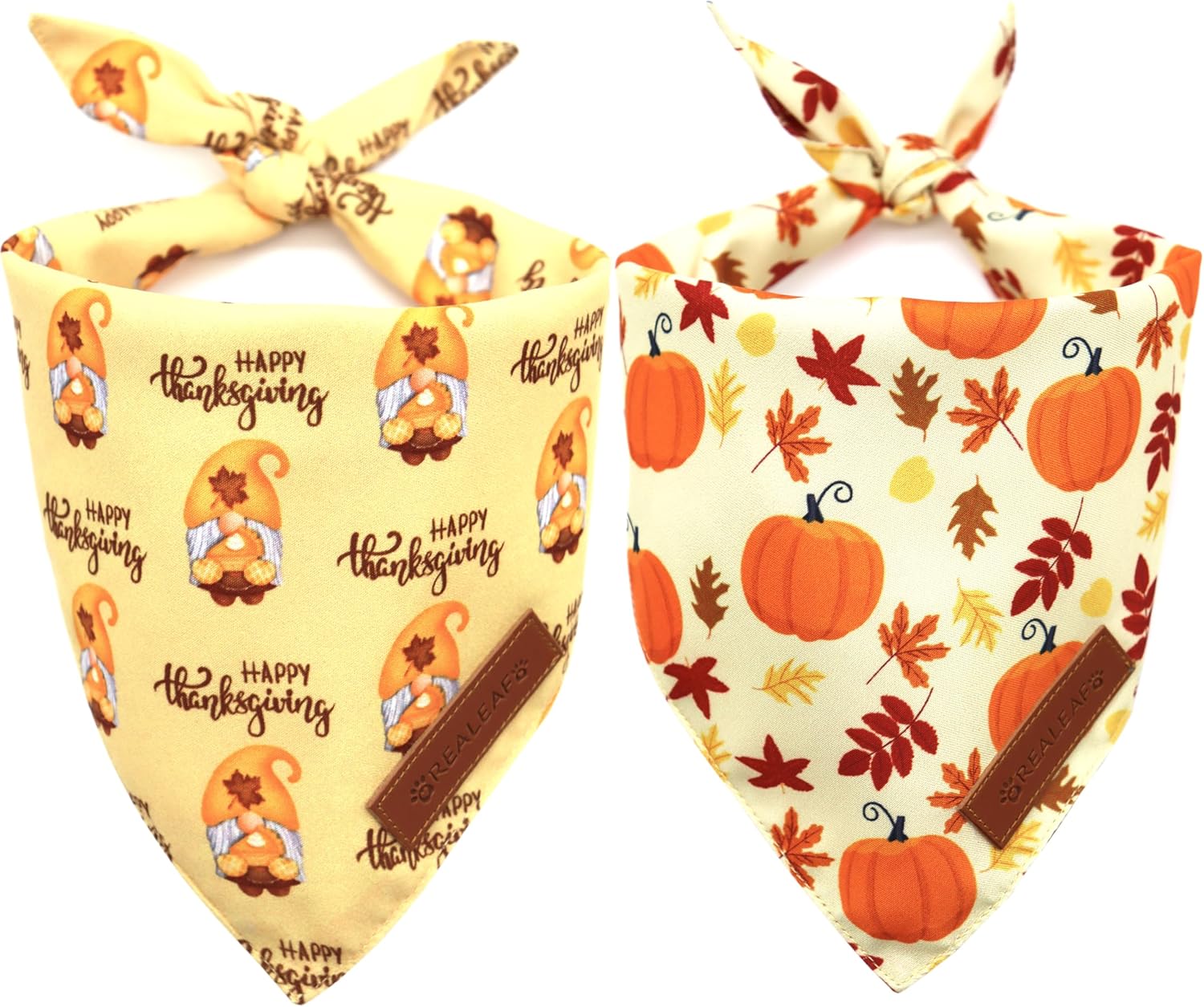 Realeaf Thanksgiving Dog Bandanas 2 Pack, Pumpkins and Happy Thanksgiving Pet Scarf for Boy and Girl, Premium Durable Fabric, Reversible Holiday Bandana for Large and X-Large Dogs Pets (X-Large)