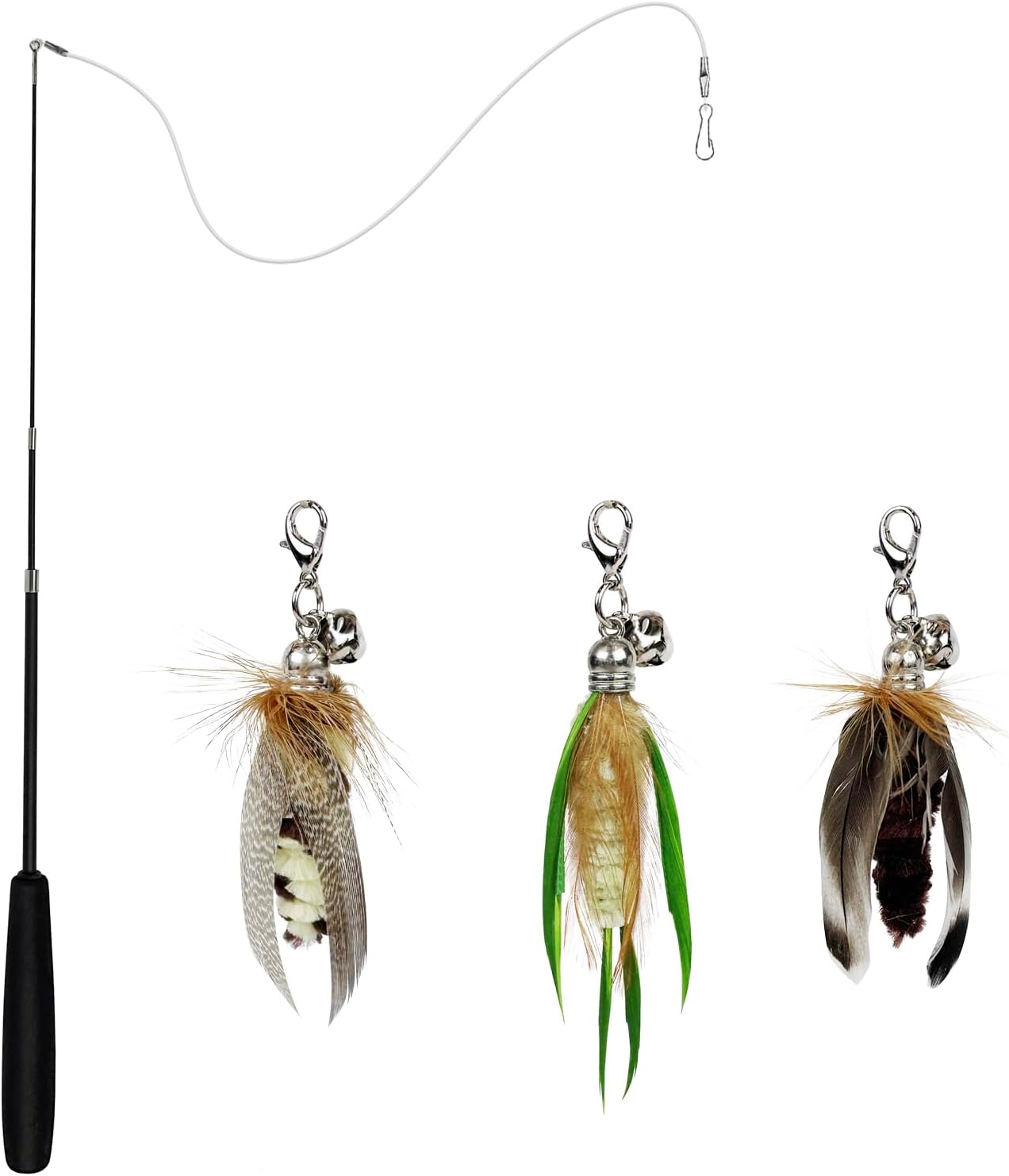 TTcat Cat Feather Wand Toys,Retractable Wand Toy with 3 Mini Insect Refills, Transparent Carbon Wire,Interactive Cat Toy Kitten Toy for Indoor Cats to Play Chase Exercis