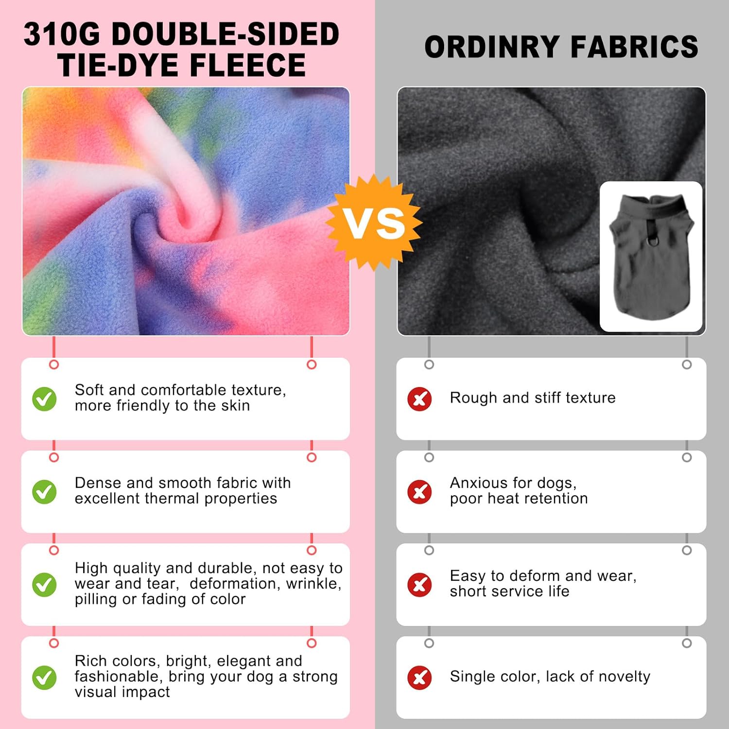 - Easy On Dog Clothes: Pull-on design with stretchy neck and leg openings makes dressing effortless. Soft V-neck buttons prevent fur snags, while the lightweight construction won't overwhelm sensitive dogs. Each dog hoodie features vibrant, fade-resistant tie-dye patterns for standout style. Perfect for holiday photos or daily walks, these dog clothes maintain color through repeated washing and wear