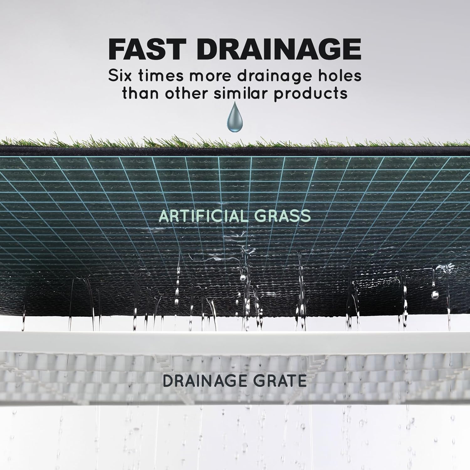 • URINE DRAINAGS QUICKLY AND LESS STINK : With 6 times more drainage holes on grass, the urine will be drained much more quickly to the pee pads than similar products, in order to reduce urine stink