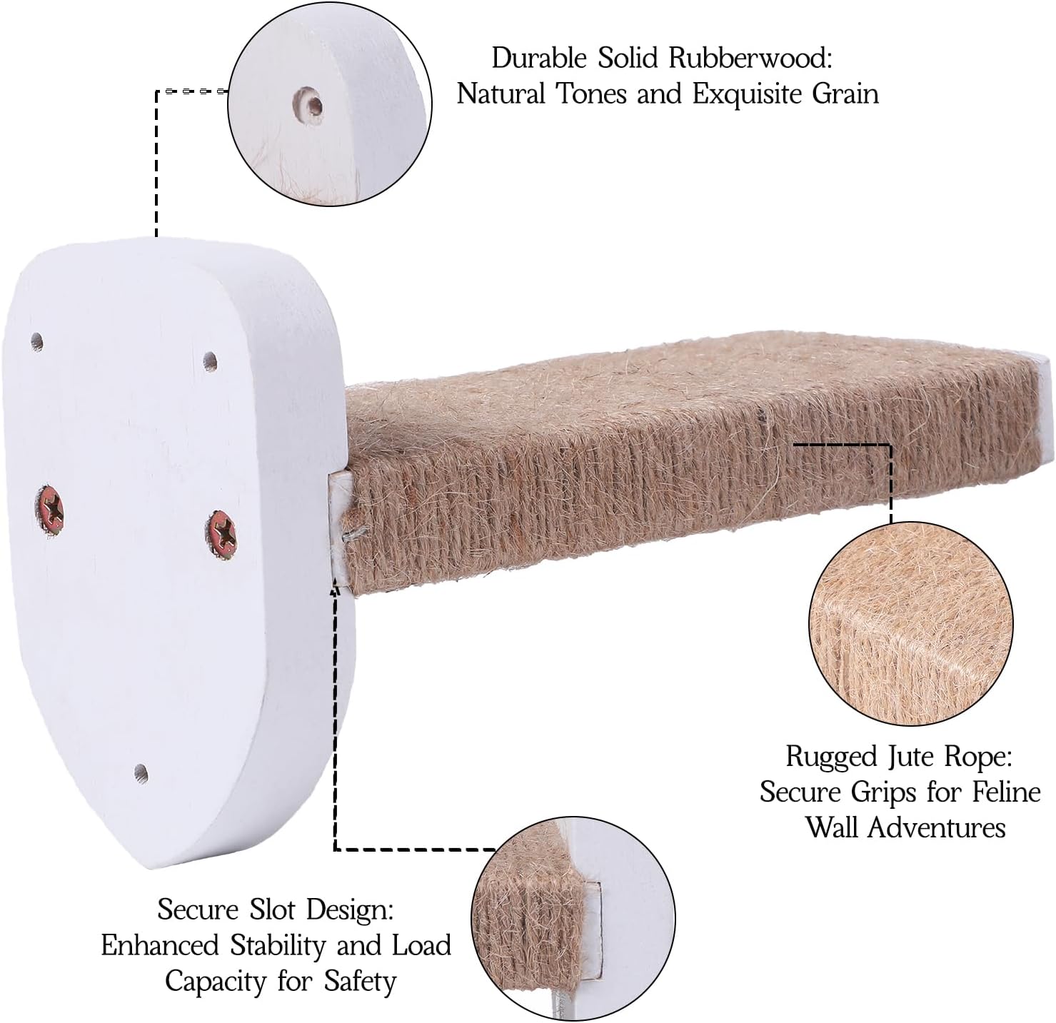 • 【Multifunctional cat wall furniture】This 3-piece set of cat wall steps is made of natural rubber wood, which is strong and stable. It not only meets the needs of cats for climbing and playing, but also, with its unique sisal rope covering design, provides an ideal scratching experience for cats. Whether used as an independent cat wall furniture or matched with other cat wall accessories, it can create a perfect activity space for your beloved cat.