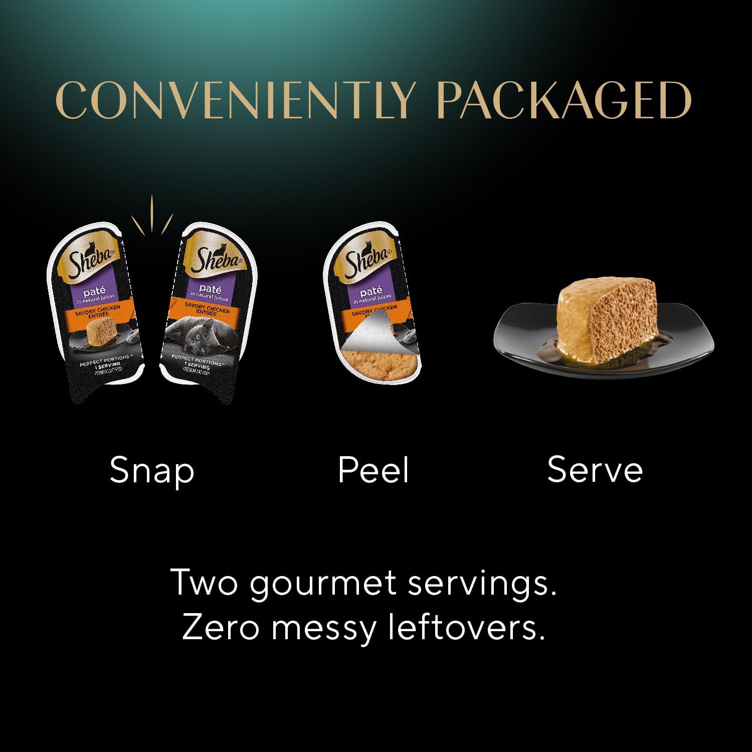 • Easy-to-Serve: Just snap, peel, and serve Sheba Perfect Portions Wet Cat Food