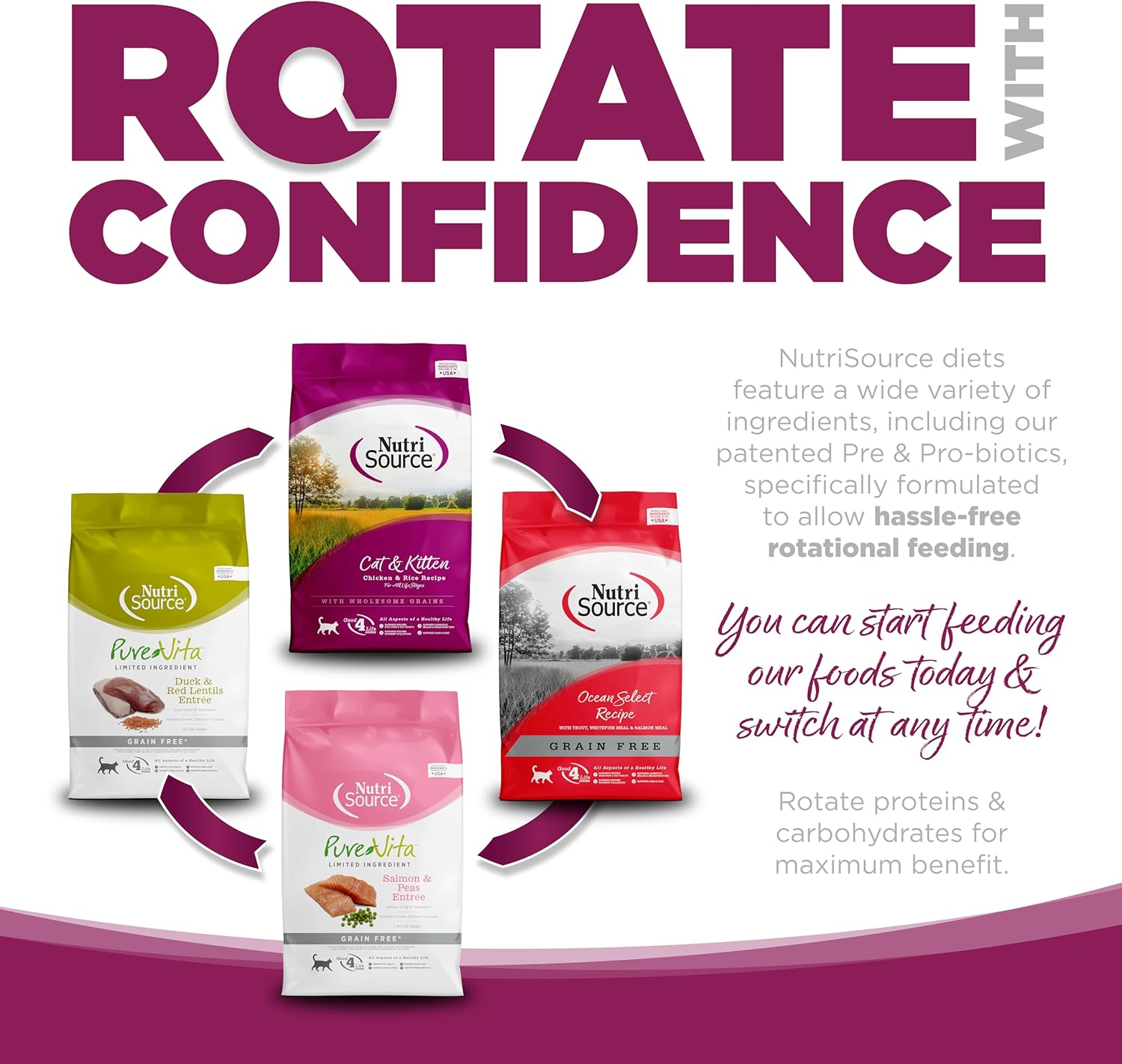 • NutriSource cat & kitten diets are scientifically formulated to promote easy rotational feeding with other NutriSource diets