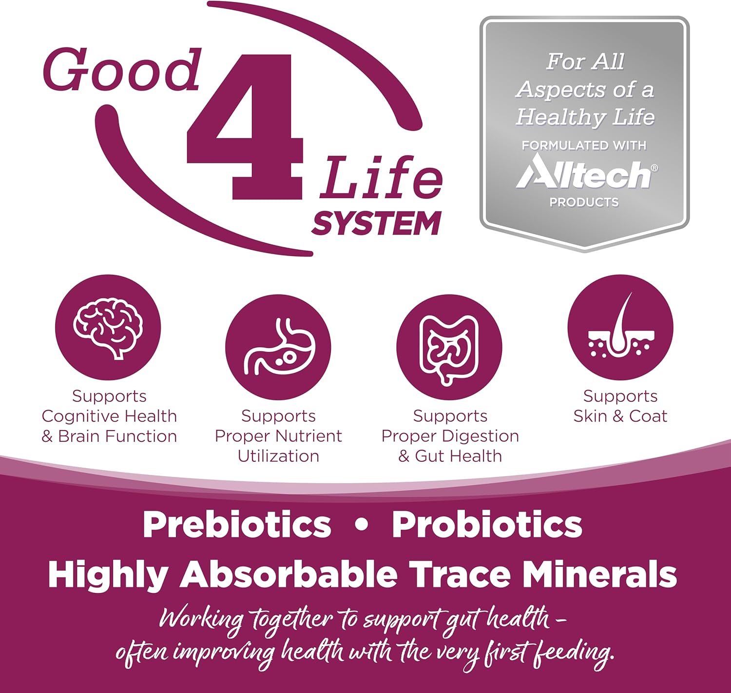 • NutriSource grain inclusive formulas include prebiotics and probiotics to support gut health and aid in absorption of key nutrients