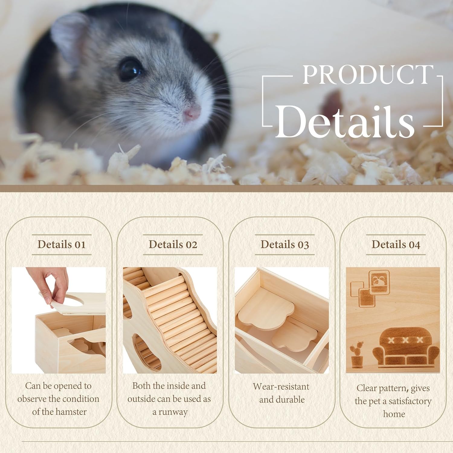 • Intricate Design with a Cozy Feel: enjoy the beautiful, clear carvings of study, bedroom, and living room design elements which create a warm, home like atmosphere for your hamster; The hamster tunnel adjac
