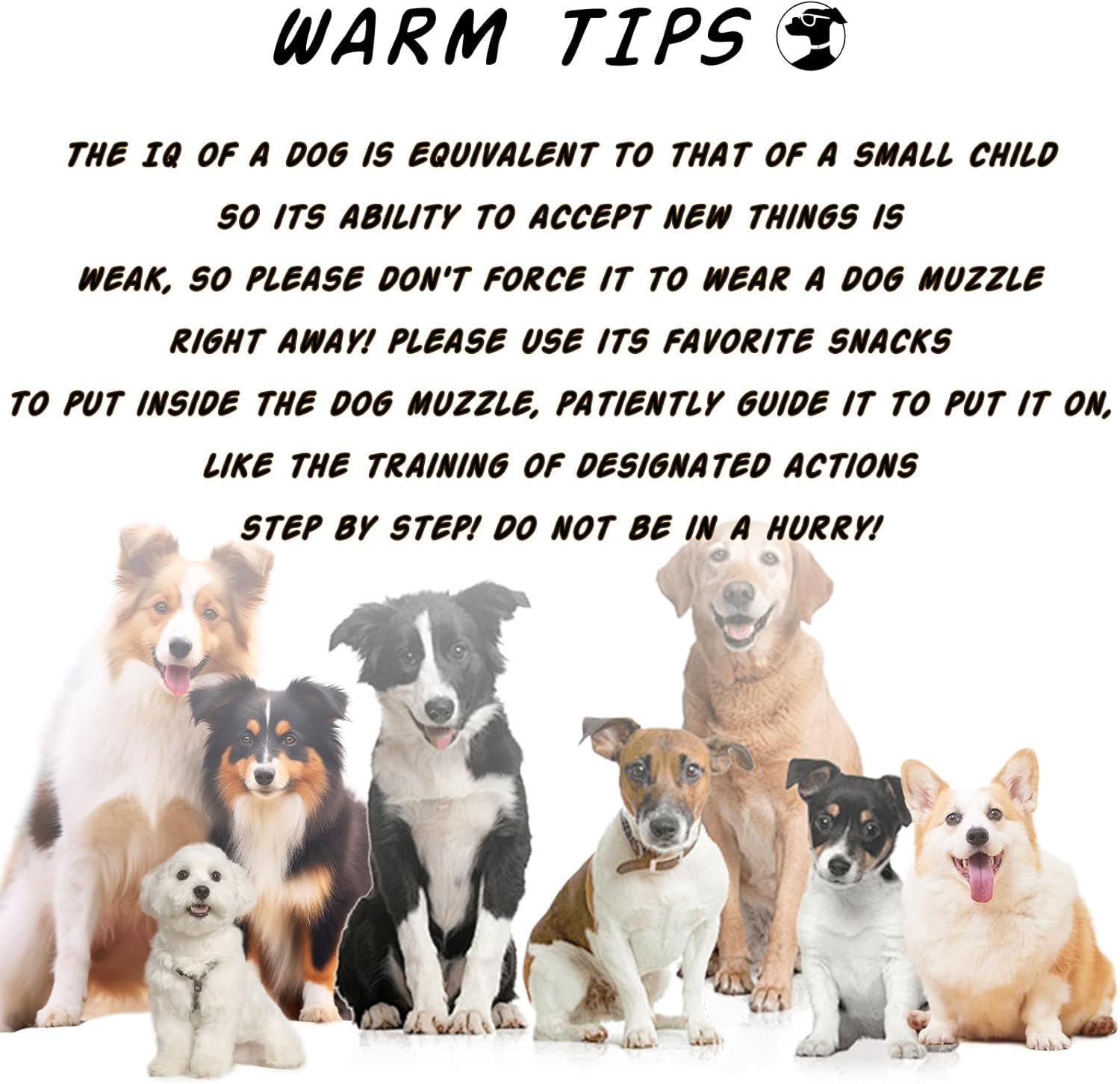 • Optimal fit & Secure: Comfort-fit design for all sizes of breeds with adjustable head and neck straps allow you to quickly adjust the size to fit your dog, making it ideal for the puppy, small, medium, and large dogs. Two folds in the strap on each side of the dog mouth muzzle are for making the dog mouth cover fitting for your dog. It’s our unique design and not stitching damage