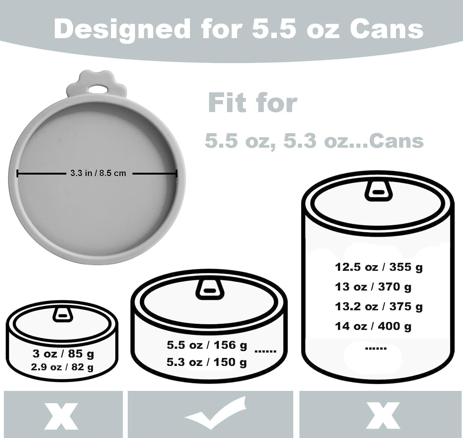 • The cat can lid inner diameter size is 3.3"/8.5cm, fiting cat food cans 5.5 oz 5.3 oz...
