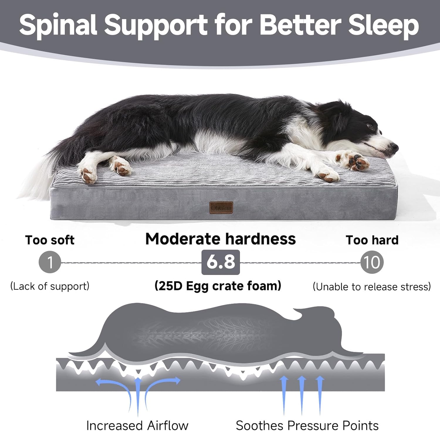 OhGeni Orthopedic Waterproof & Machine Washable Dog Bed for Medium Large Pets, Cat Mat with 25D Egg Crate Foam, Non-Slip Bottom & Removable Cover, Invisible Zipper, 36 Inches(Gray)
