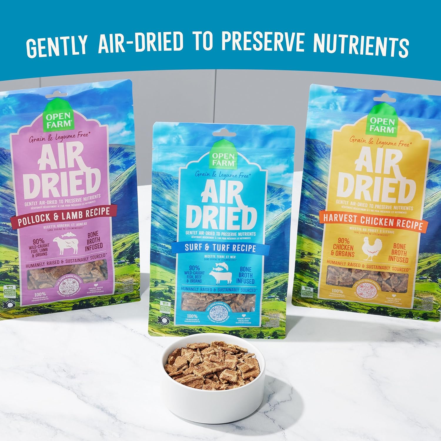 Open Farm, Air Dried Dog Food Infused with Bone Broth, Grain & Legume Free, Complete Meal or Food Topper, Surf & Turf Recipe, 2lb Bag