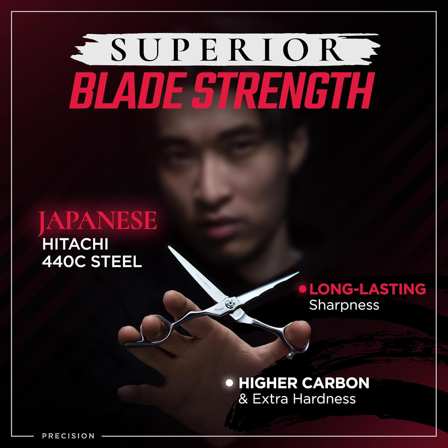 - EXTREME SHARP EDGE - Crafted from Japanese HITACHI 440C steel and sharpened with a convex edge technique, these scissors for hair cutting deliver a razor sharp, durable edge that ensures exceptional precision and long-lasting performance.