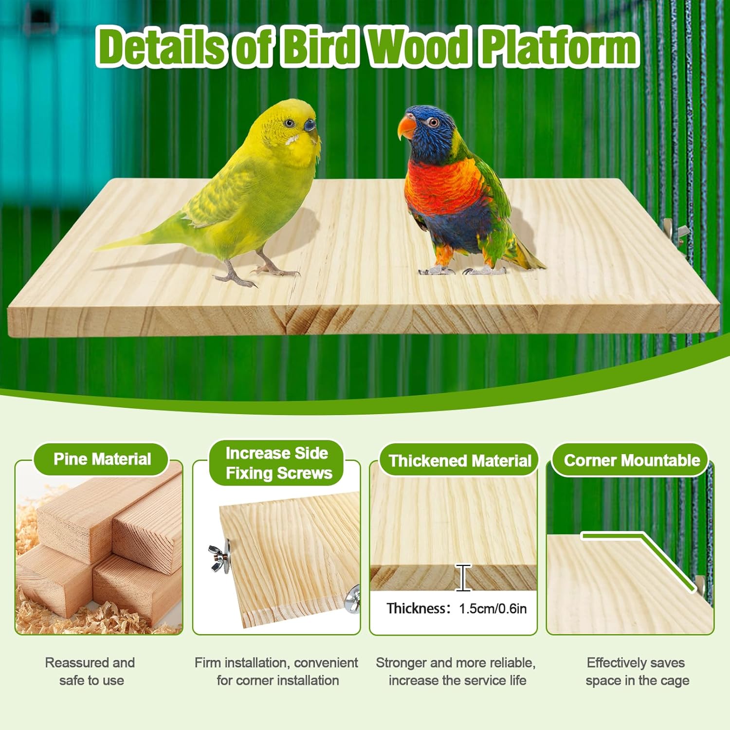 - EASY TO INSTALL: Large Parakeet wood cage platforms includes 2 wing nuts, 6 spacers and 2 wooden boards, you just need to adjust parrot stand platform to the proper position of the birdcage and then tighten the nuts