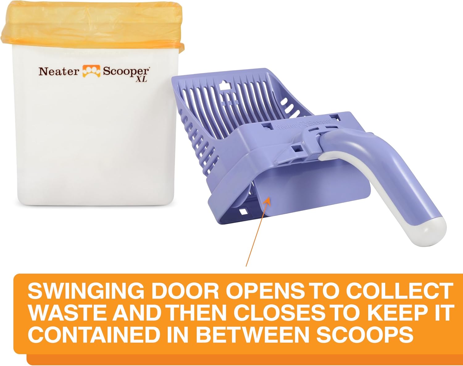 - REFILL BAGS & DISPENSER INCLUDED: Includes 60 lavender-scented refill bags and a dispenser that attaches to your litter box. The bags are larger than standard pet waste bags and custom-fit for the Neater Scooper XL. For refills, choose orange Neater Scooper XL refill bags for a perfect fit.