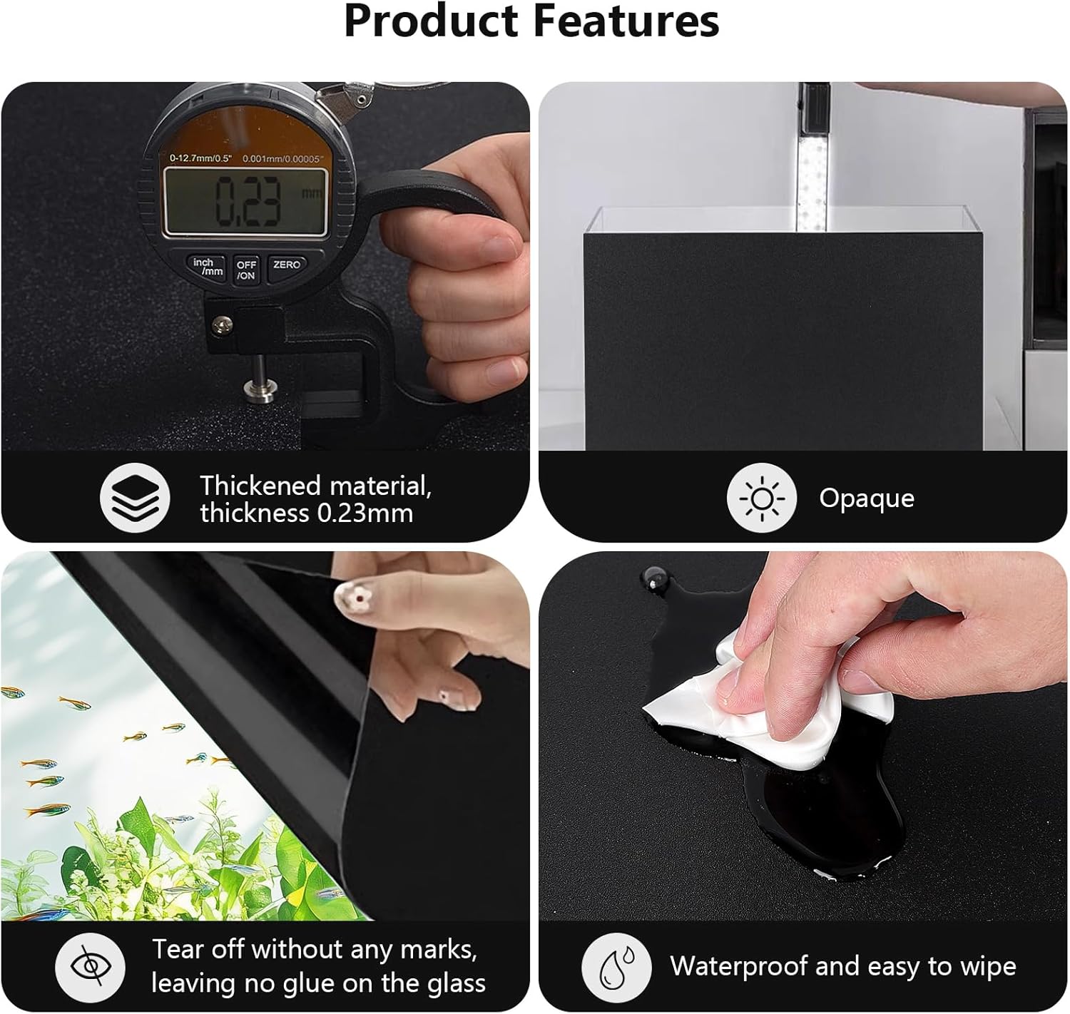 Aquarium Background Paper Decor Fish Tank Backdrop Wallpaper Electrostatic Adhesive, No Glue, Easy to Install, Reusable (17.7“H×47.2”L, Black)