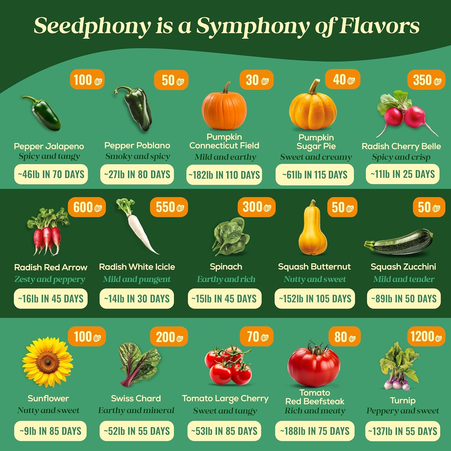 • Complete Gardening Kit: vegetables seeds for hydroponic garden indoor comes in a waterproof, resealable bag with individual heirloom vegetable seeds packets. Includes gardening tools: leaf clipper, seed dibber, tweezers, weeding fork, and widger tool, perfect for both beginner gardeners and seasoned pros. Scan the QR code for a comprehensive growing guide and bonus culinary e-book.