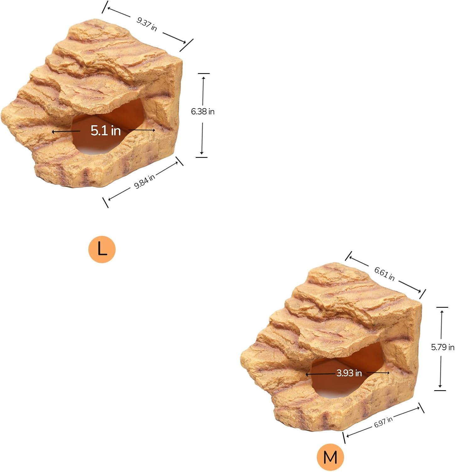 - NATURAL SIMULATION FOR REPTILE HABITATS: Designed to mimic natural rock formations, this hideout adds a realistic touch to any reptile tank or terrarium. Ideal for bearded dragon hide, leopard gecko hide, snake hideout, and other reptile decor, creating a comfortable, stress-free environment for your pets
