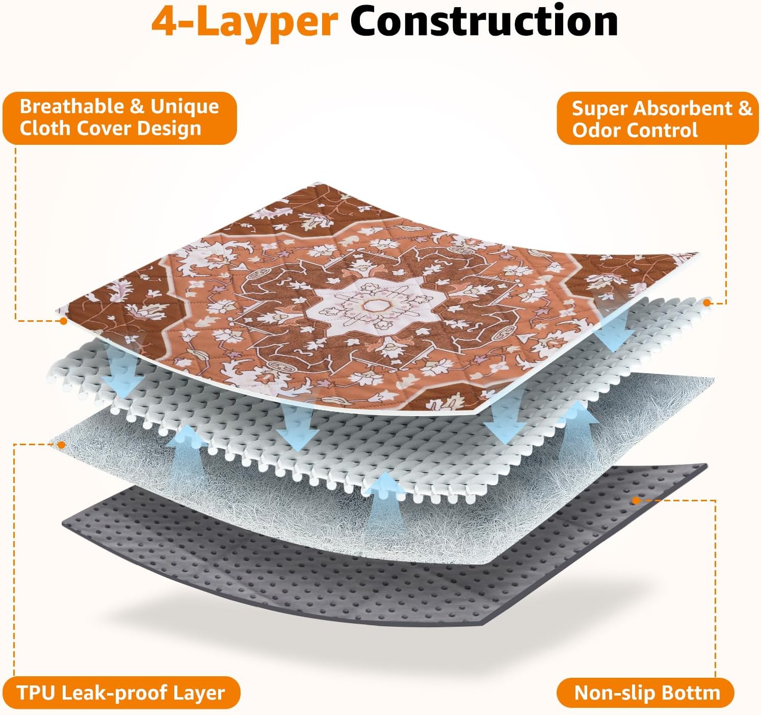 - STYLISH DOG PADS: Our Bohemian style reusable puppy pads not only ensure reliable floor protection, but they also add a touch of style to your home. They seamlessly blend with your interior decor, providing a comfy, safe spot for your furry friend’s activities or relaxation