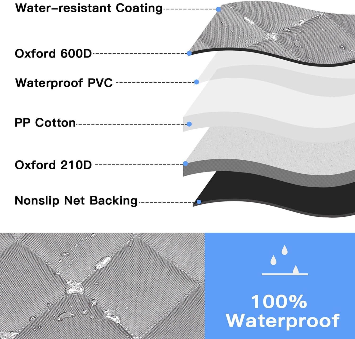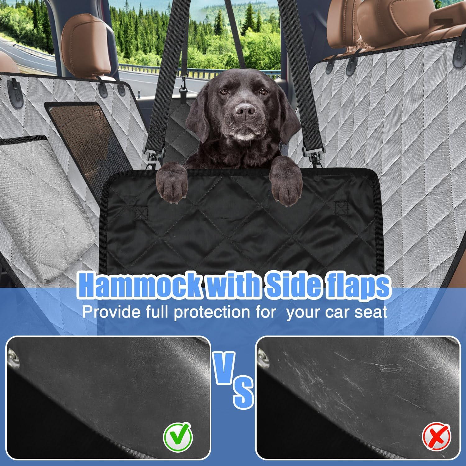 • ✅【ANTI-SLIP BACKING】Made with 600D Oxford fabric and PVC material for extra comfort and durable.The Slip-proof PVC backing and the new seat anchors design makes the cover stay in place when you are driving, guarantee the safety on your lovely pets
