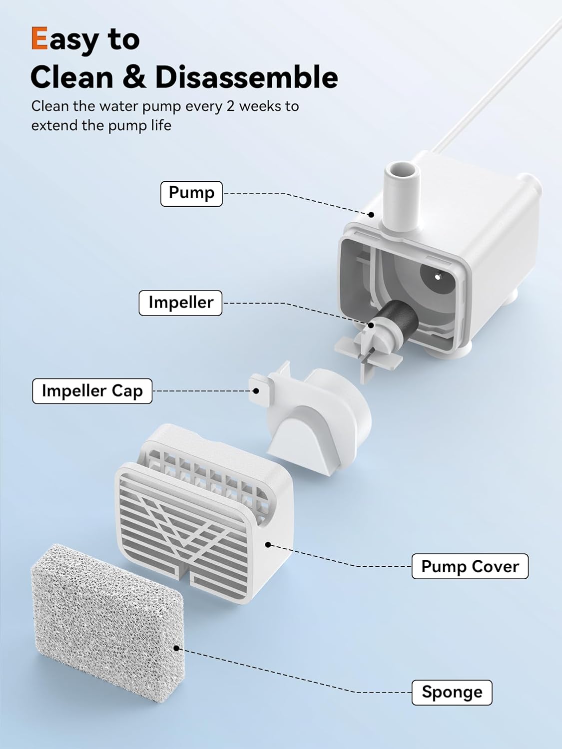 - Easy to Monitor and Maintenance: The pet water fountain features a transparent window for easy monitoring of water levels. It features dry burn protection that automatically stops the flow of water to prevent the pump from drying out. Itβs also easy to disassemble and clean, with dishwasher-safe components, making maintenance a breeze.