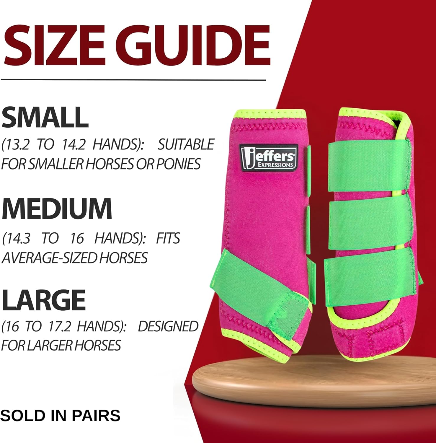 Jeffers Equine Neon Horse Boots – 1 Pair – Pink & Lime – Small Size – Breathable Neoprene, Secure Strap Closures – Durable Protection for Front & Hind Legs, Training, Trail & Riding Use