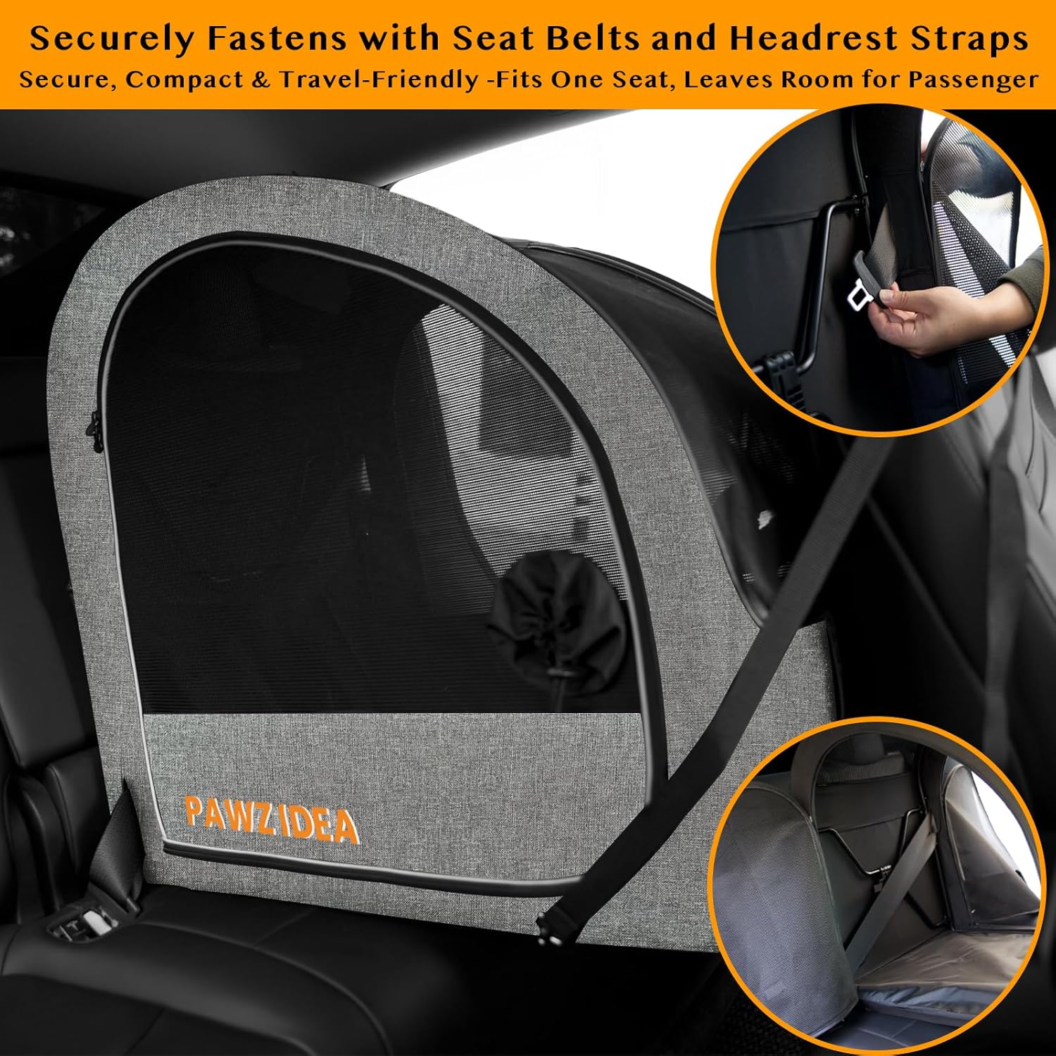 • Convenient Dual-Side Entry & Compact Design - Dog crate features doors on both sides, allowing easy pet access from either the driver or passenger side of your vehicle. Compact enough to occupy a single car seat, leaving ample space in the rear for human passengers. Install fabric cover first (align all 6 holes). Fully expanded and tested for stability, close the crate. Place on car seat, expand again, and secure with seat belt & headrest strap.