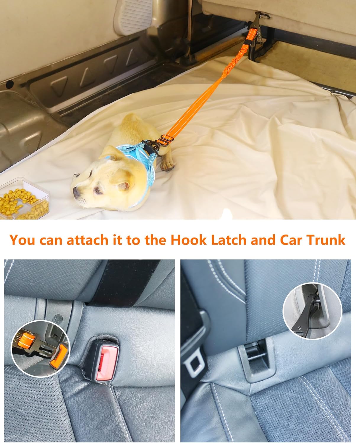 - Universal Compatibility - AUBELL dog car harness seatbelt is suitable for the different space of the vehicles. Canine bungee seat belts are suitable for a puppy, teether dog, small breed doggie, strong dog, and medium-large dog. For your pet's security, please do not attach the seat belt to your pet's collar directly. Using the seatbelt leash with a pet harness is recommended over a pet collar