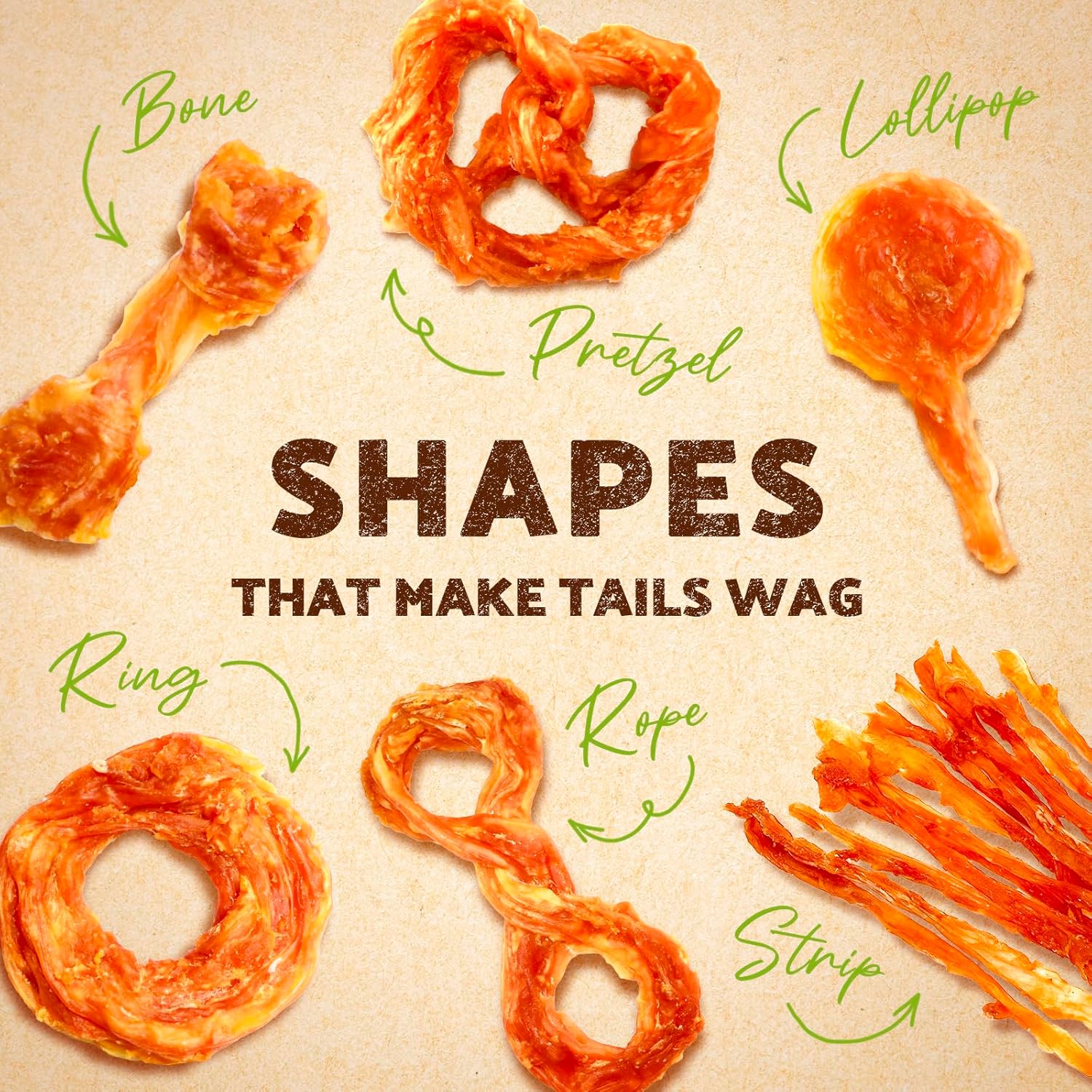 • Hypoallergenic: These chews are rawhide-free, grain-free, and made without common allergens, fillers, or artificial additives — a cleaner, allergy-friendly option for dogs with food sensitivities or intolerances. A trustworthy hypoallergenic dog treat made with simple, wholesome ingredients your pup will love.