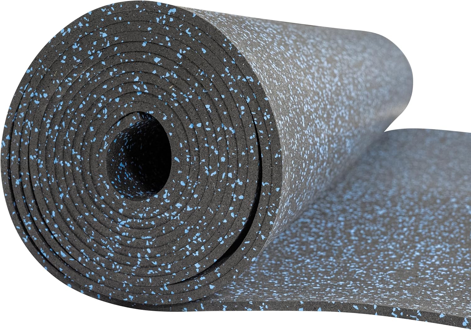 Playsafer Genaflex Rubber Gym Floor Mat, Heavy Duty Commercial Protective Gym Flooring Roll - 8mm Thick (10% Blue, 4' X 15')