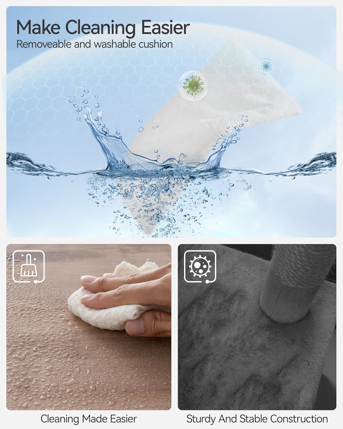 • Easy Maintenance: These cat condo are very easy to clean! During daily care, wipe the surface with a cloth, and use a comb or lint roller to brush the cushions. When thoroughly cleaning, the cushions can be removed for washing.