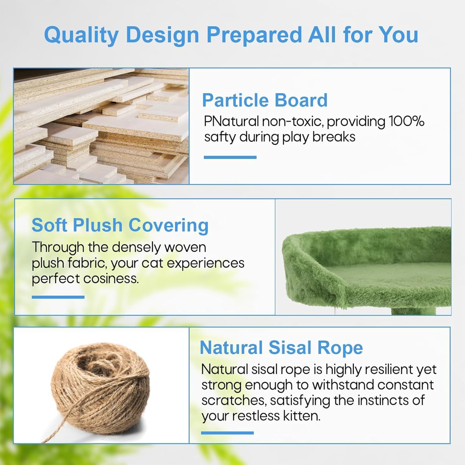 FDW Cat Tree 70in Cat Tower Multi-Level Durable Cat Scratching Post & Cozy Fun Cat Jumping Platform Space Saving Cat Condo Pet Play House for Indoor Cats,Green