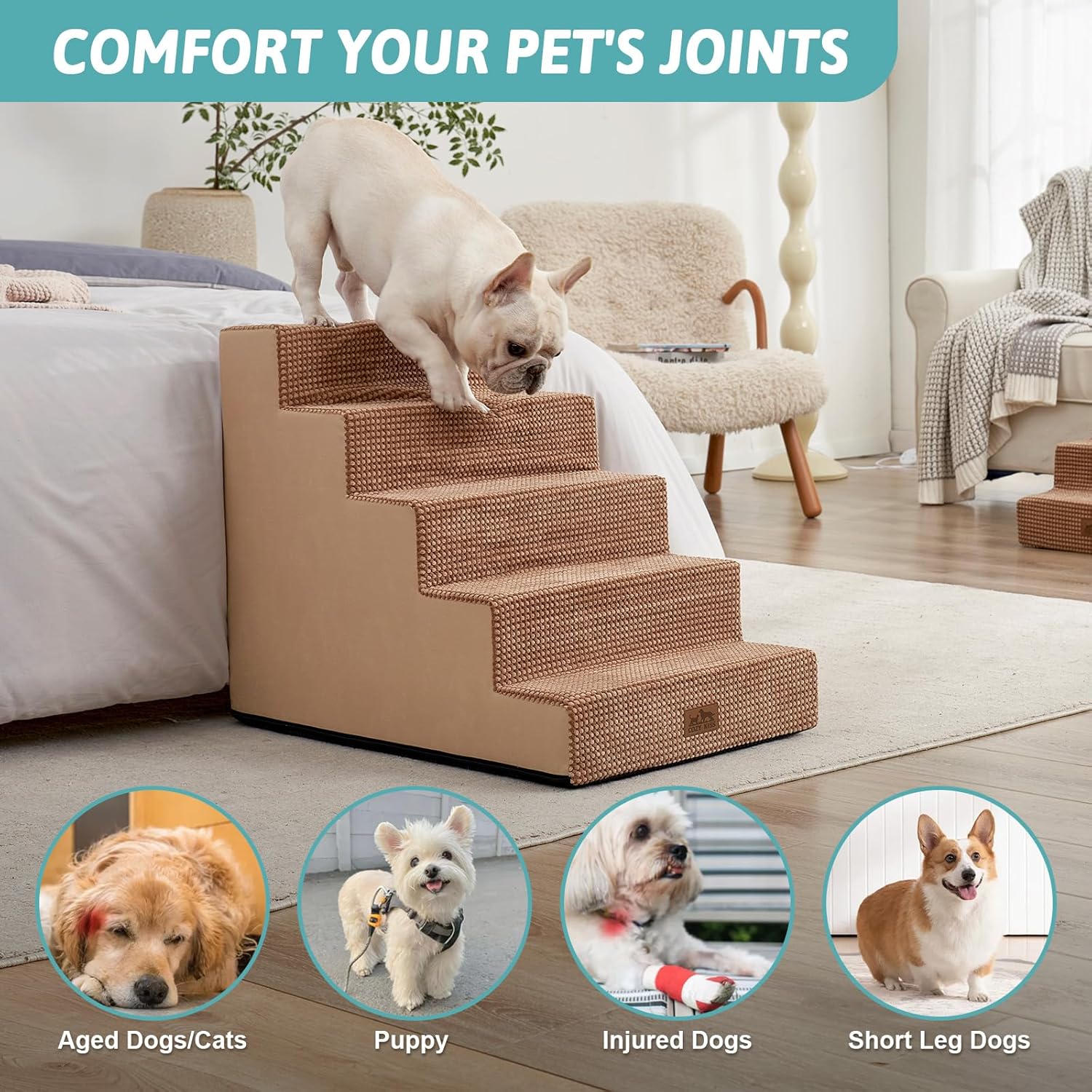 Dog Stairs for Small Dogs, 5 Tier Wider Pet Stairs for High Beds, 23.6" H Non-Slip Dog Steps for Old Cats, Puppies, Small Medium Dogs, 29.5x19.7x23.6 inch, Light Brown
