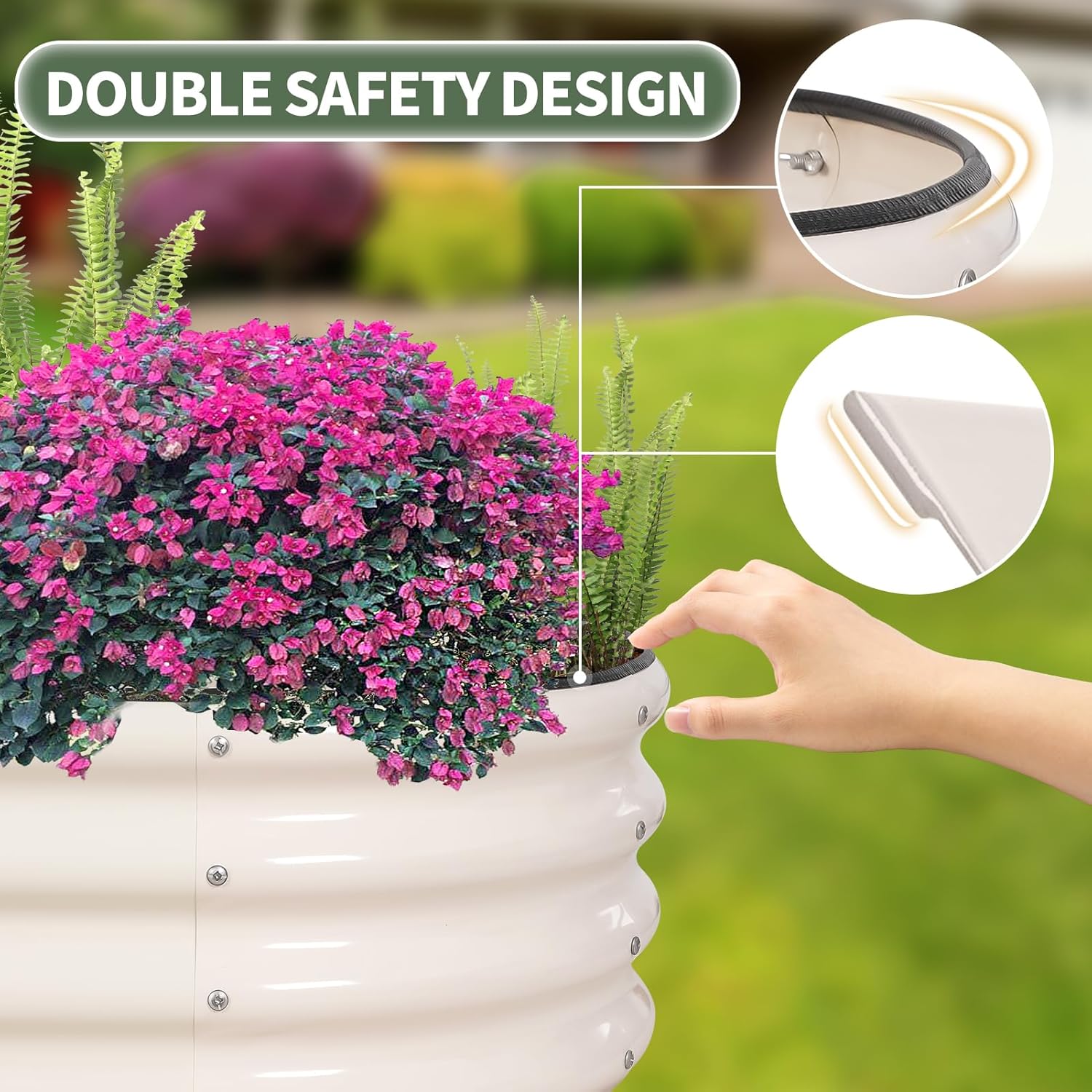 • 【High-Quality Materials & Durable】 Made from 0.7mm metal panels with double-layer anti-corrosion, this outdoor raised garden bed features a robust oval-shaped design for added strength and durability. Resistant to rust and corrosion, it provides a long-lasting gardening solution that can be reused for many years, ensuring a sustainable and reliable space for your plants to thrive