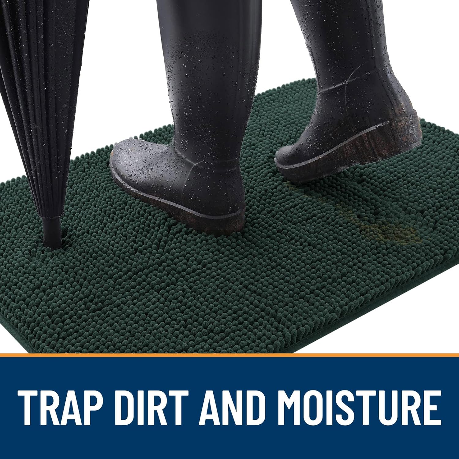 OLANLY Dog Door Mat for Muddy Paws 44x24, Absorbs Moisture and Dirt, Absorbent Non-Slip Washable Doormat, Quick Dry Chenille Mud Mat, Entry Indoor Entryway Carpet for Inside Floor, Blackish Green
