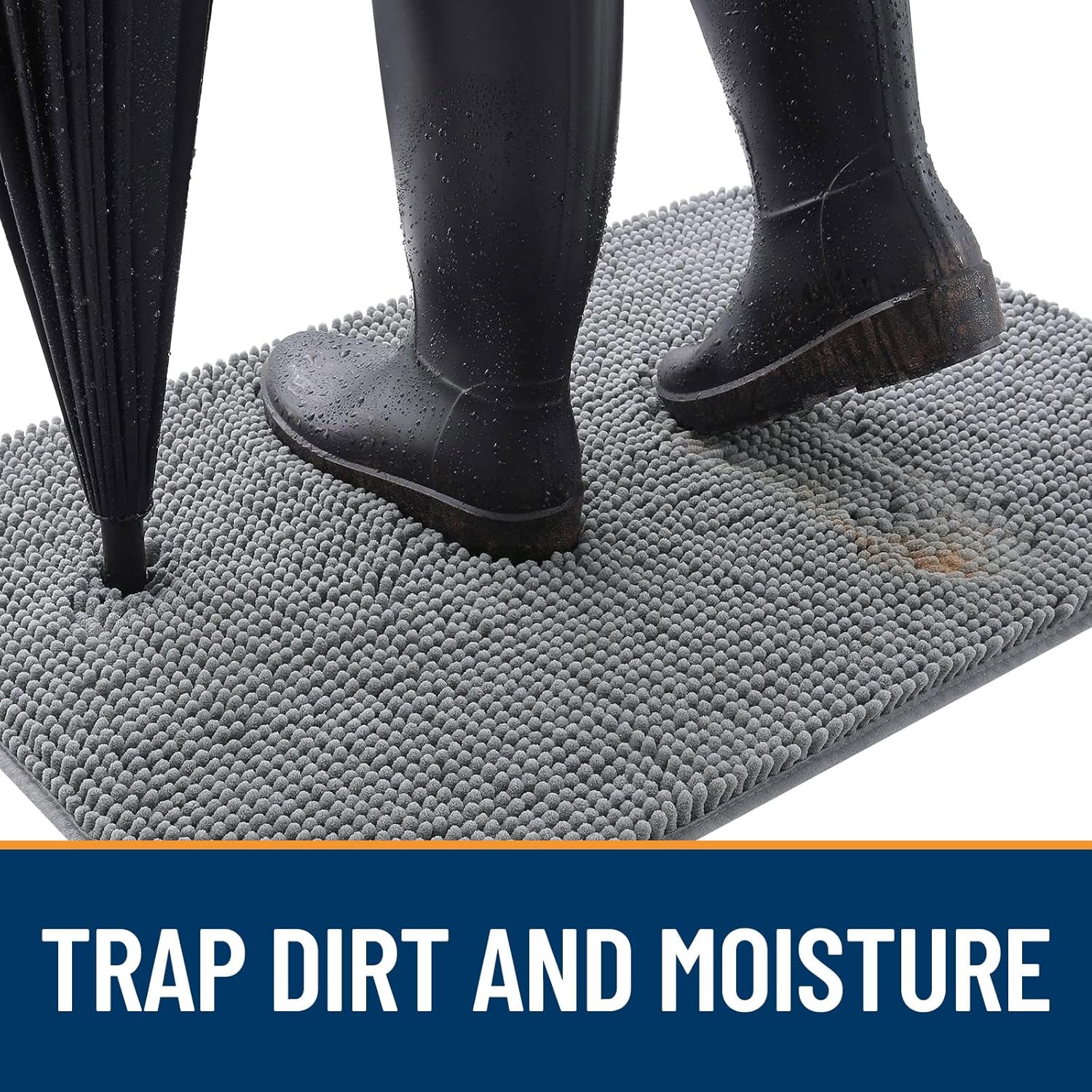 OLANLY Dog Door Mat for Muddy Paws 45x27, Absorbs Moisture and Dirt, Absorbent Non-Slip Washable Doormat, Quick Dry Chenille Mud Mat for Dogs, Entry Indoor Entryway Carpet for Inside Floor, Grey