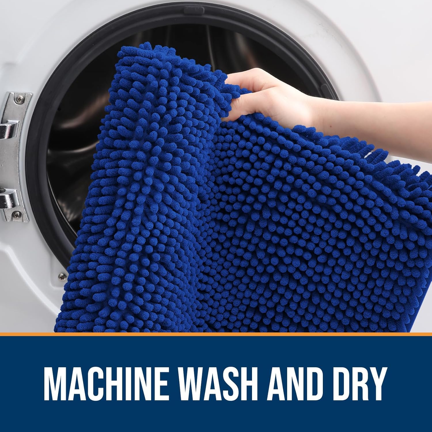 OLANLY Dog Door Mat for Muddy Paws 47x20, Absorbs Moisture and Dirt, Absorbent Non-Slip Washable Doormat, Quick Dry Chenille Mud Mat for Dogs, Entry Indoor Entryway Carpet for Inside Floor, Royal Blue