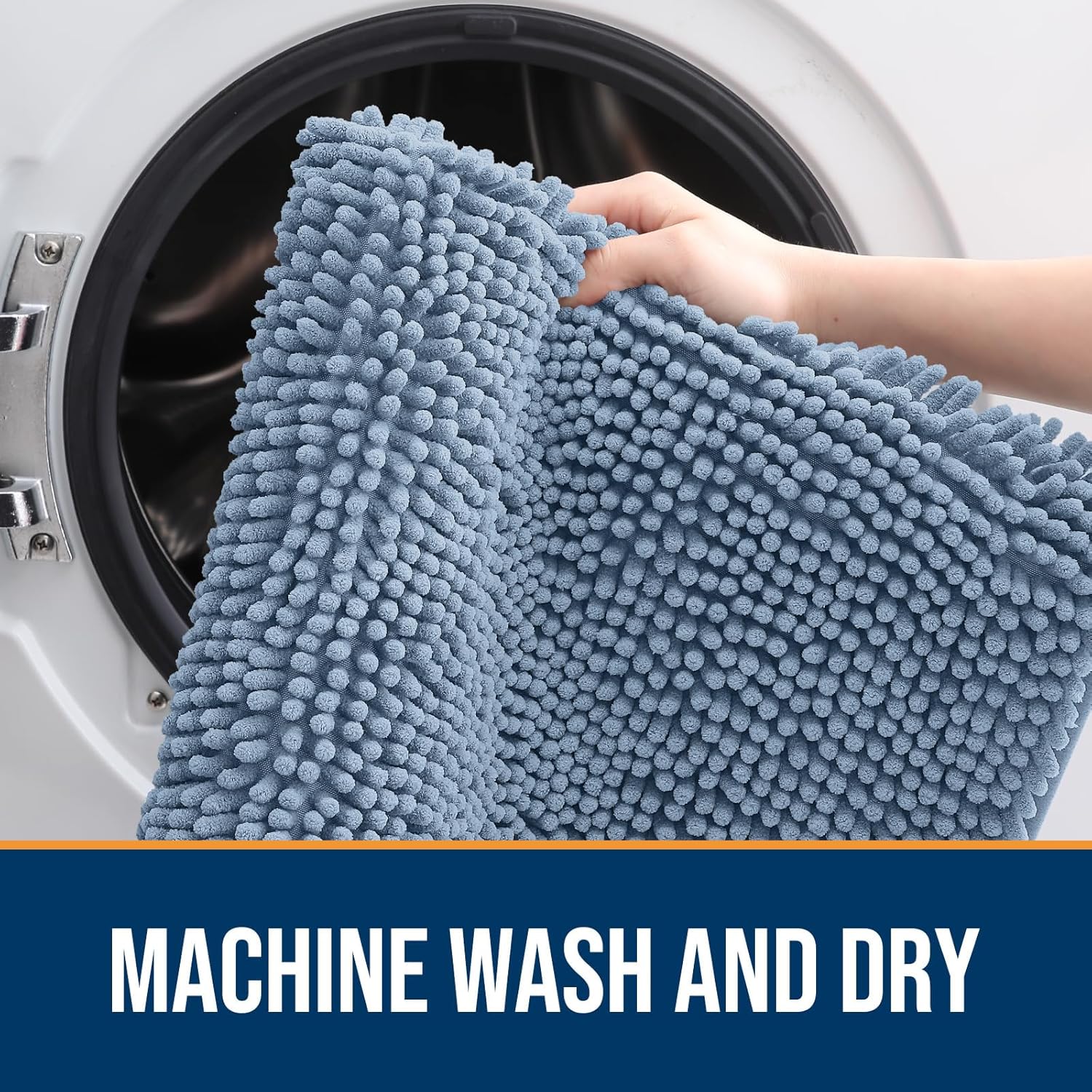 OLANLY Dog Door Mat for Muddy Paws 47x24, Absorbs Moisture and Dirt, Absorbent Non-Slip Washable Doormat, Quick Dry Chenille Mud Mat for Dogs, Entry Indoor Entryway Carpet for Inside Floor, Airy Blue