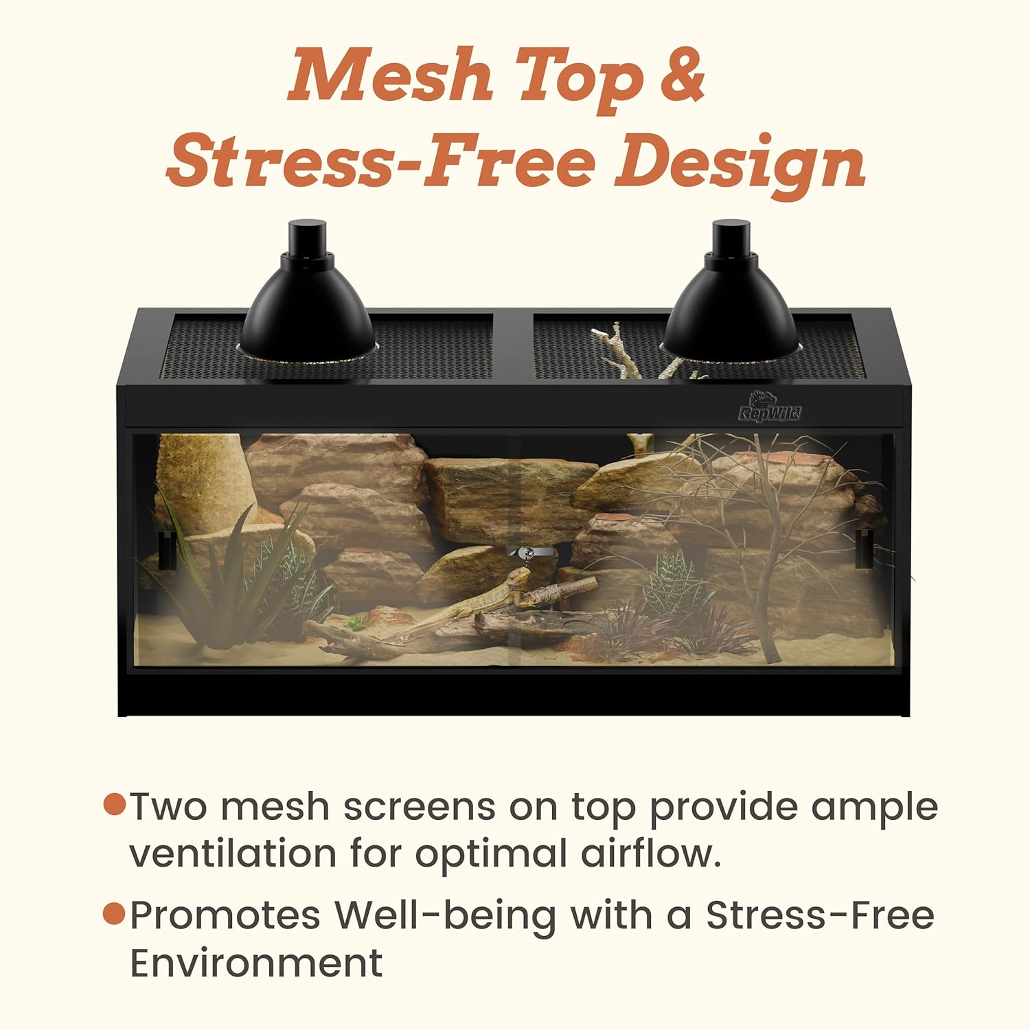 • 【Secure Glass Door & Ventilated Top】Features a front-opening tempered glass door with a lock and handle for easy access and security. The durable mesh top ensures excellent ventilation and allows UVB and heat penetration, creating a comfortable habitat for your pets.