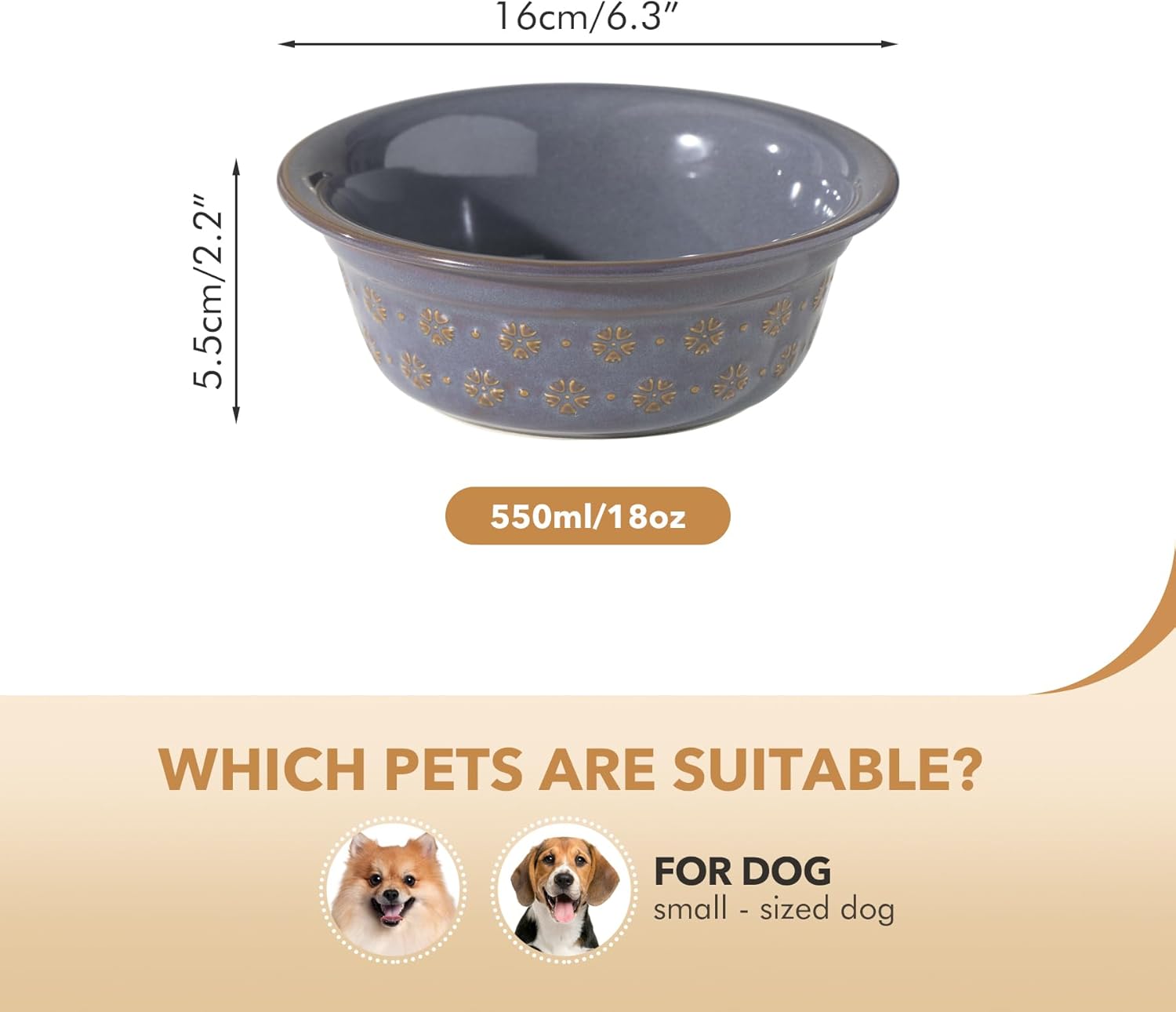 • Healthy Ceramic and Unique Design: Our bowls are made of ceramic material. Ceramic bowl is safe and healthy, lead-free, non-toxic, harmless and durable. According to investigations, plastic bowls are likely to cause black jaws. What's more, our pet bowls feature a reactive glaze which has a beautiful luster and is unique.