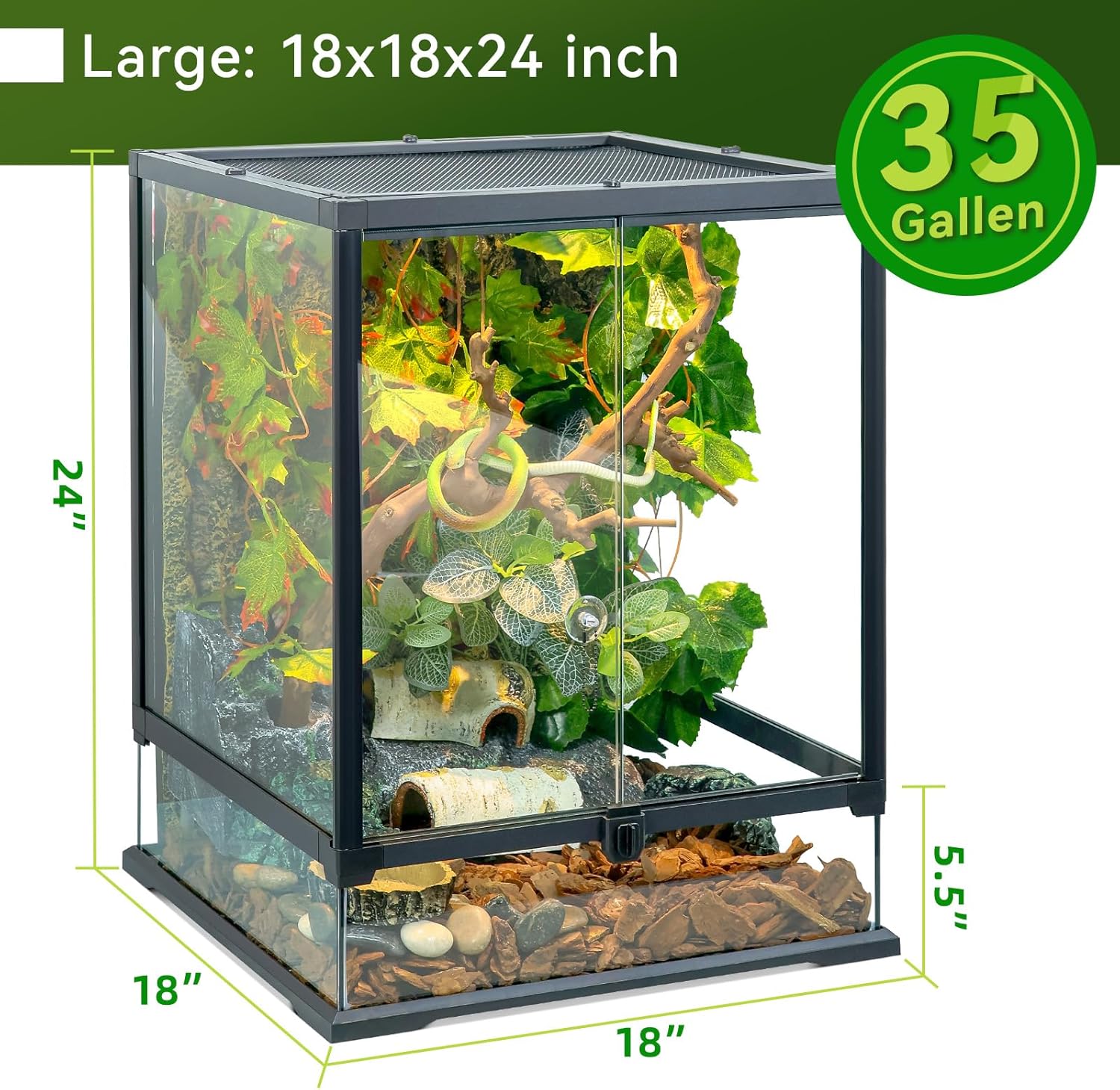 - 【Unobstructed Viewing】The leopard gecko tank is primarily made of glass, allowing for detailed and convenient observation of your pet's every adorable moment. This applies to any reptile tank, be it for a snake, gecko, or tree frog terrarium.